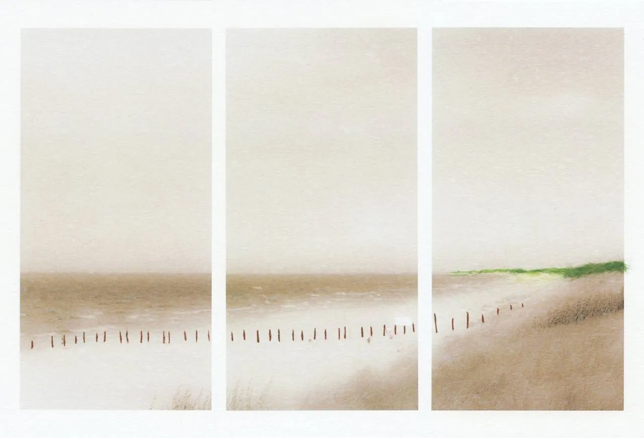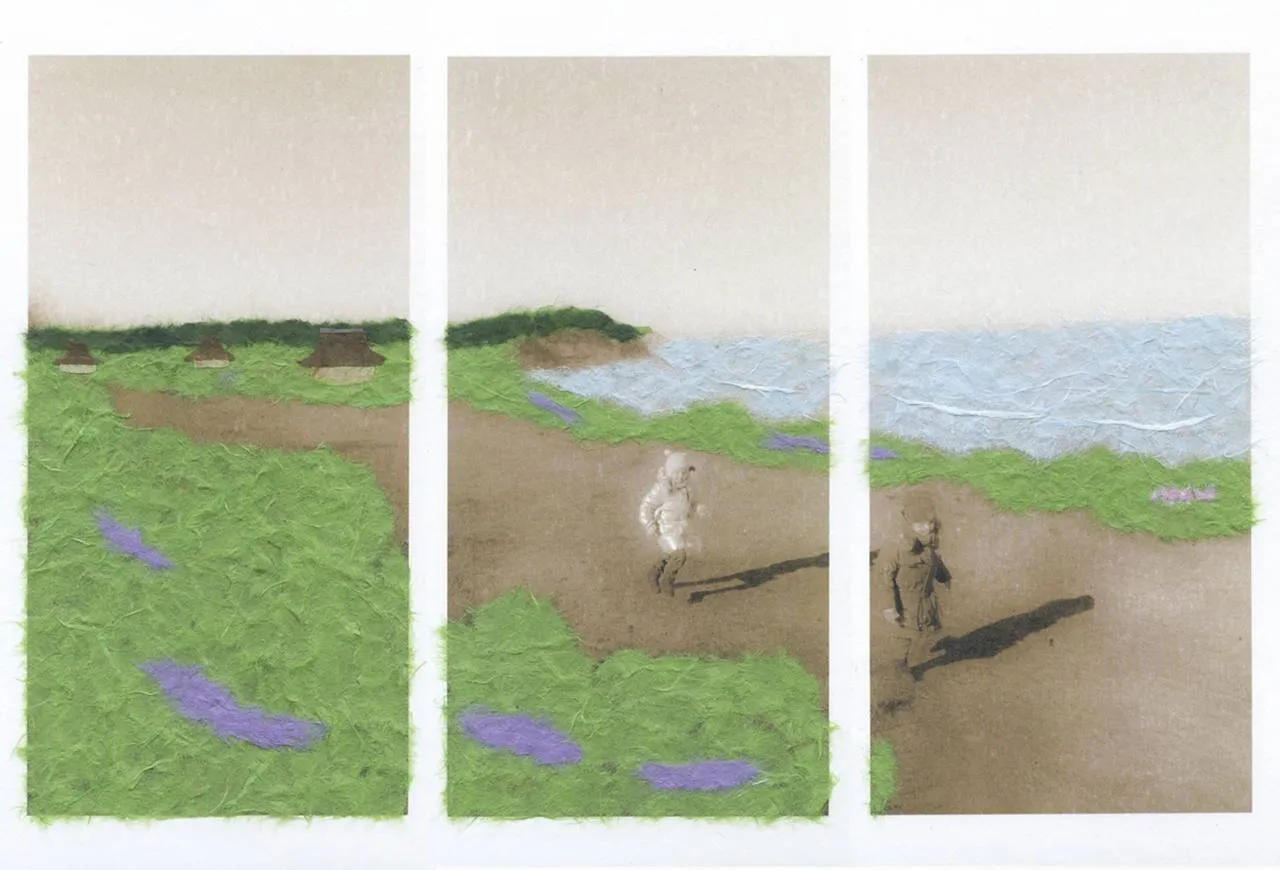 Японский художник Икуру Кувадзима несколько лет назад прошёл по пути Бруно Таута и убедился, что взгляды архитектора остаются актуальными и сегодня. Вдохновлённый этим опытом, он отправился на Балтийское побережье для создания фотографий. На основе своих снимков Икуру разработал бумажные коллажи, используя традиционную японскую технику аппликации из рваной бумаги, известную как чигири-э. Итогом его работы стала серия триптихов, представляющая собой интерпретацию видения архитектора-изгнанника, который с ностальгией смотрел на Балтийское море из Азии в преддверии Второй мировой войны. Этот конфликт кардинально изменил географическую и культурную карту Балтийского региона, что делает творчество Кувадзимы особенно значимым в контексте исторической памяти и современного восприятия архитектуры.