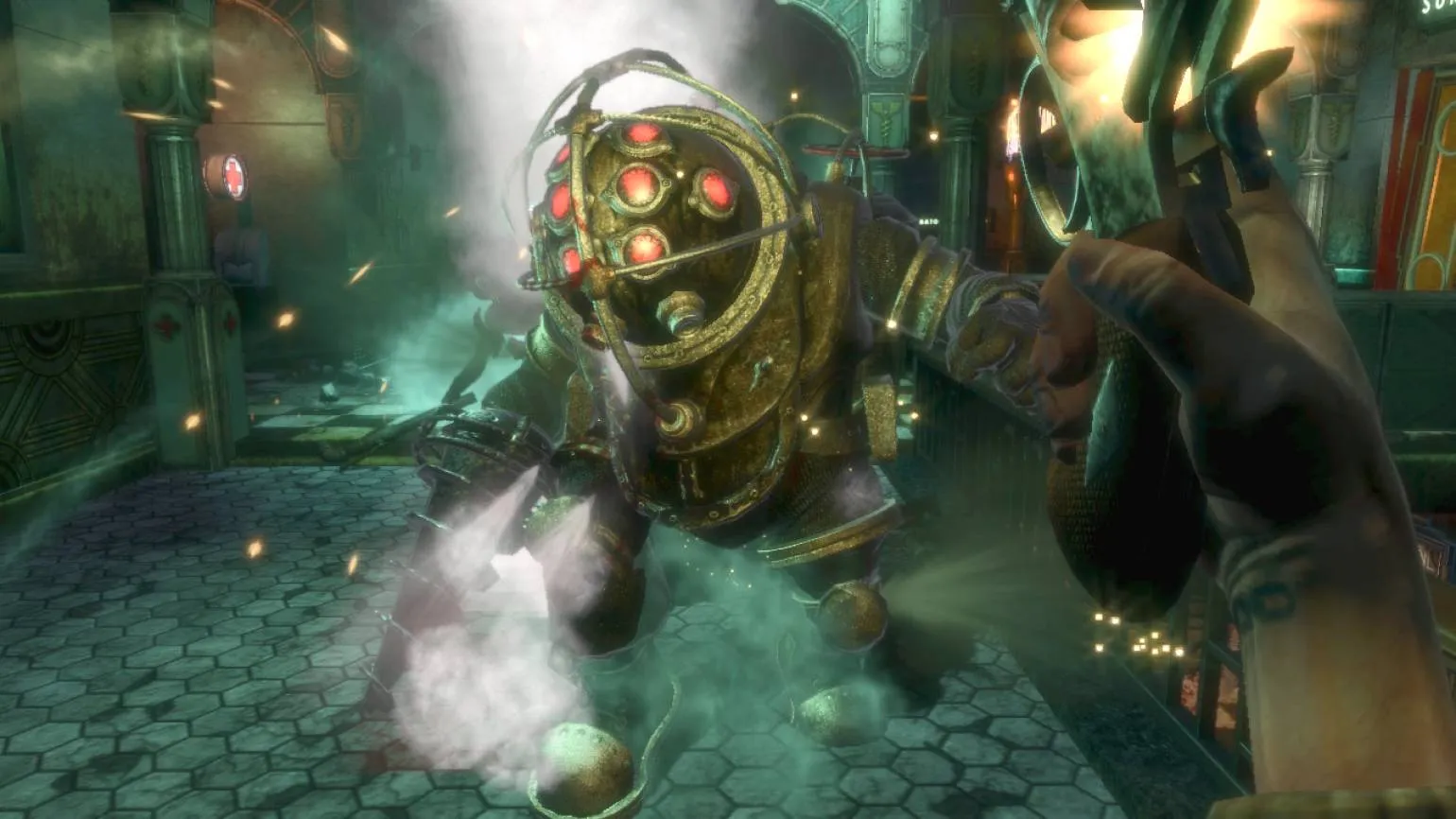С вита-камерами даже устрашающий на вид Большой Папочка становится не такой уж серьёзной угрозой Скриншот: игра BioShock / 2K Boston, 2K Australia, 2K