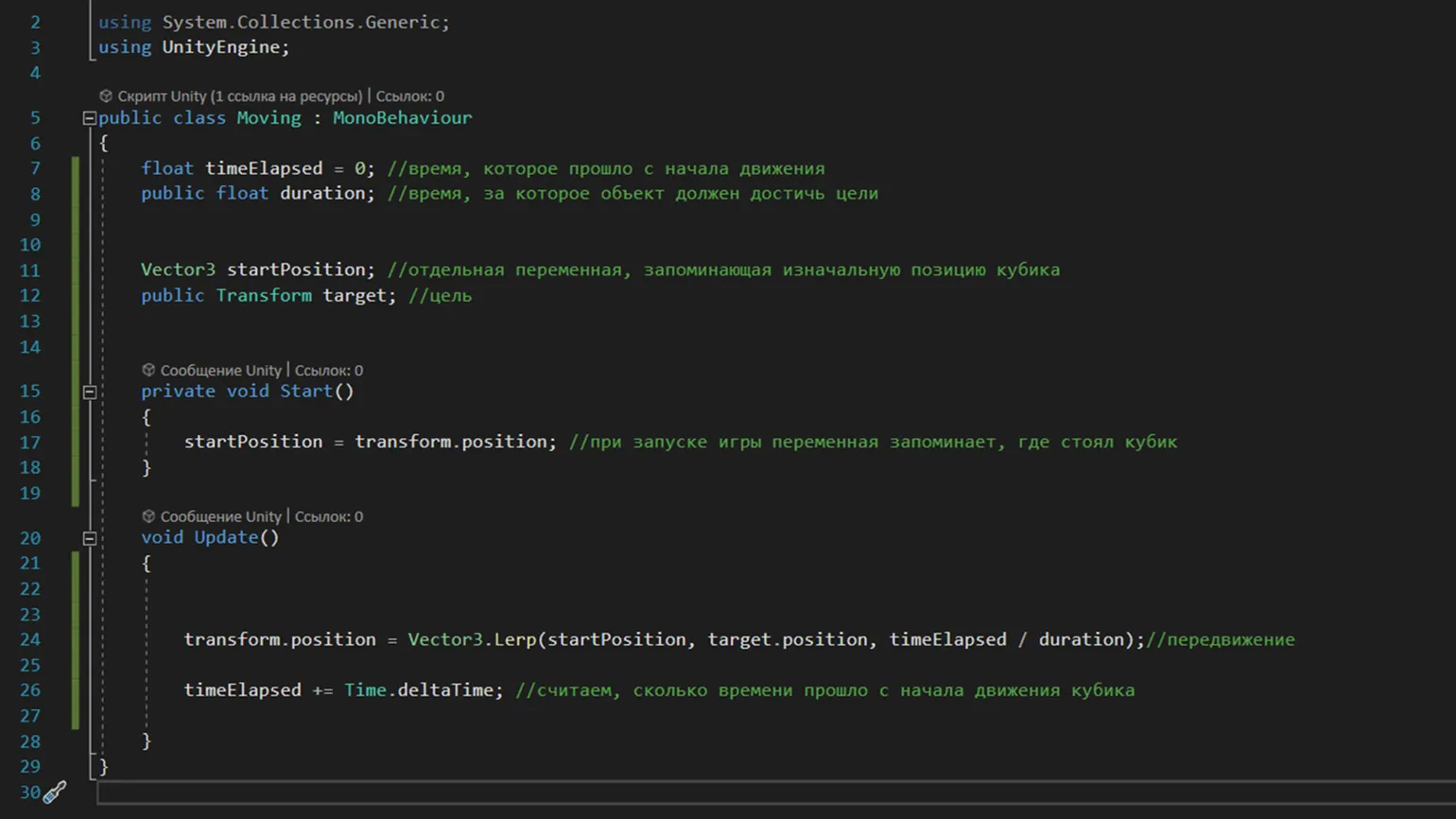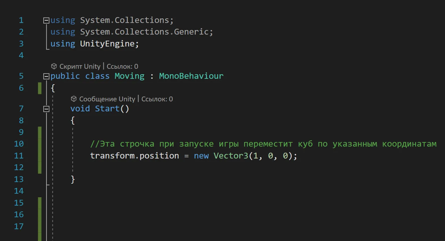 - Перемещение объектов с использованием transform.position в Unity