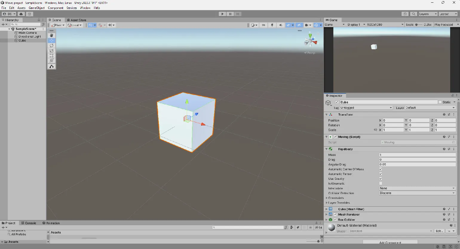 При запуске игры вы увидите, как кубик падает вниз. Это происходит благодаря действию гравитации в игровом движке. Если вы отключите параметр «Use Gravity», кубик останется неподвижным. Управление гравитацией является важным аспектом игрового процесса, так как оно влияет на физику объектов и взаимодействие с окружающей средой.