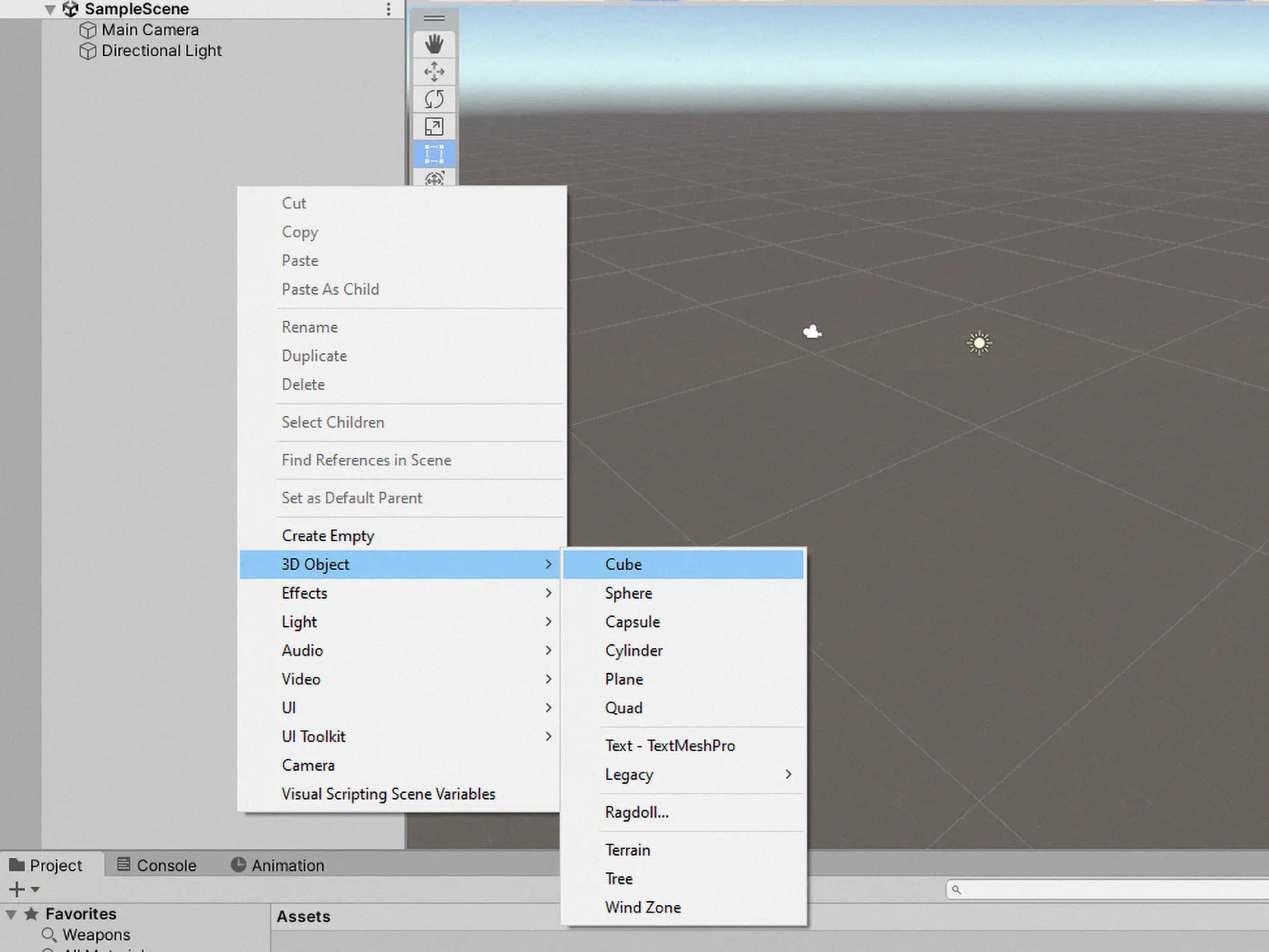 Для создания 3D объекта в вашем проекте, щелкните правой кнопкой мыши в окне Inspector и выберите опцию «3D Object», затем кликните на «Cube». В окне Scene появится белый куб, который вы сможете настраивать и использовать в дальнейшем взаимодействии.