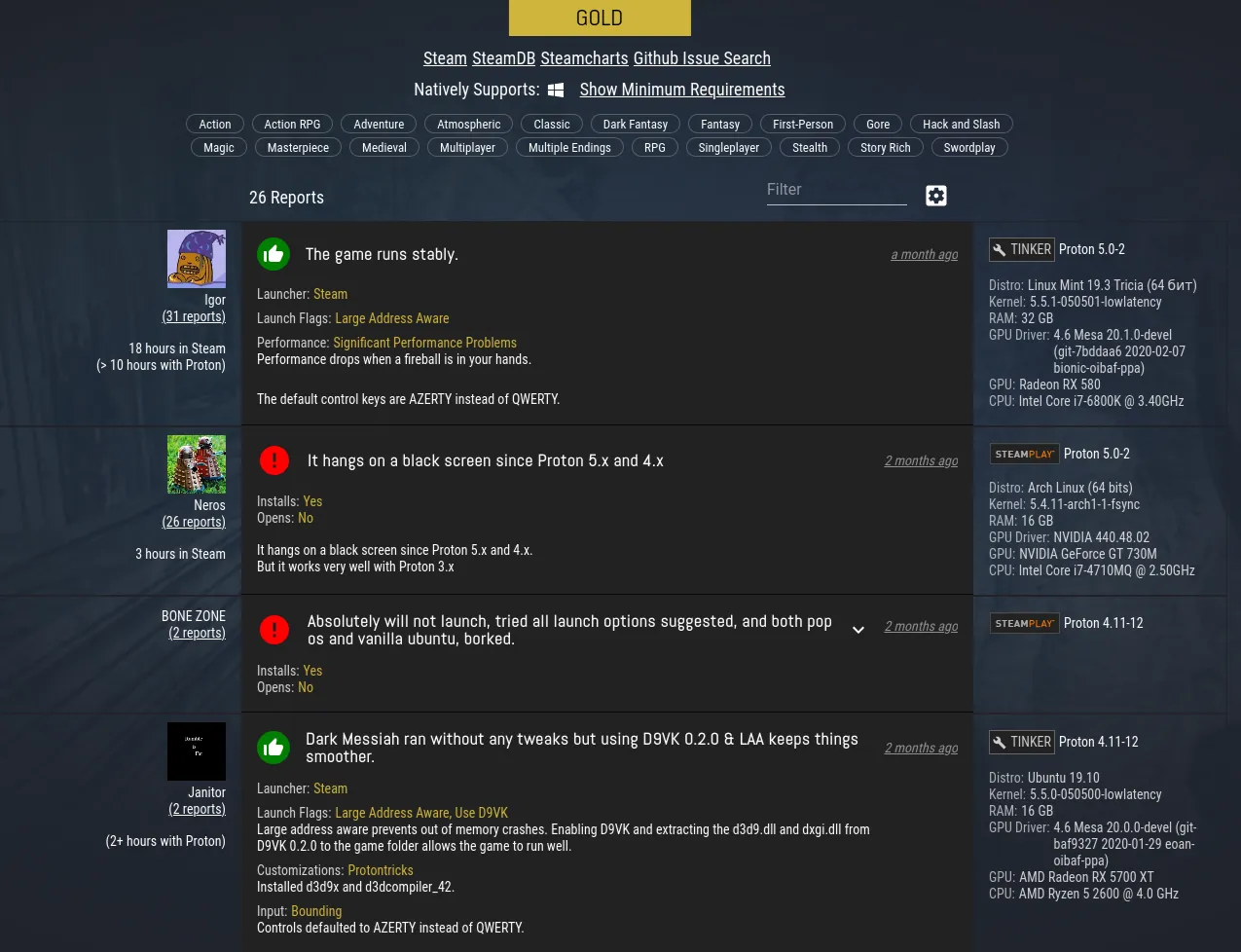Энтузиасты разработали сайт ProtonDB, на котором представлен список игр, совместимых с Proton. Здесь можно найти информацию о рекомендуемых настройках, а также узнать, какая версия Proton лучше всего подходит для конкретной игры. ProtonDB является ценным ресурсом для пользователей, стремящихся оптимизировать свой опыт игр на Linux.