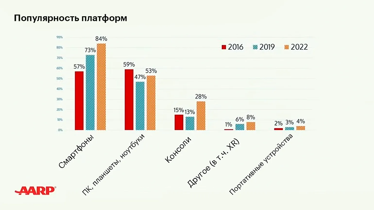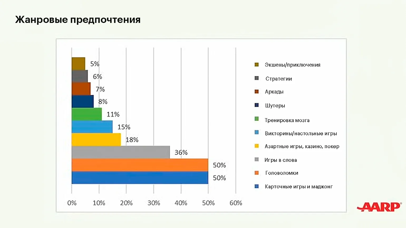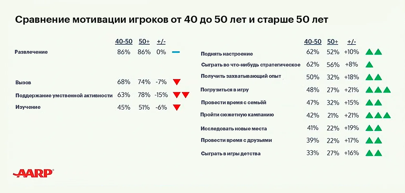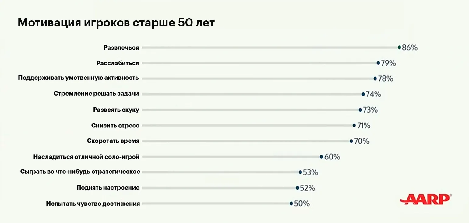• Избегайте стигматизации игроков старше 50 лет. Эта аудитория так же разнообразна, как более молодая.