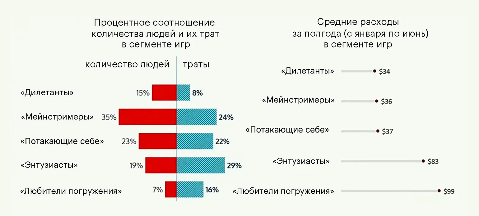 • «Любитель погружения» (7%) Самый заинтересованный в играх сегмент аудитории. Его представители любят все жанры видеоигр, включая MMORPG и мультиплеерные шутеры.