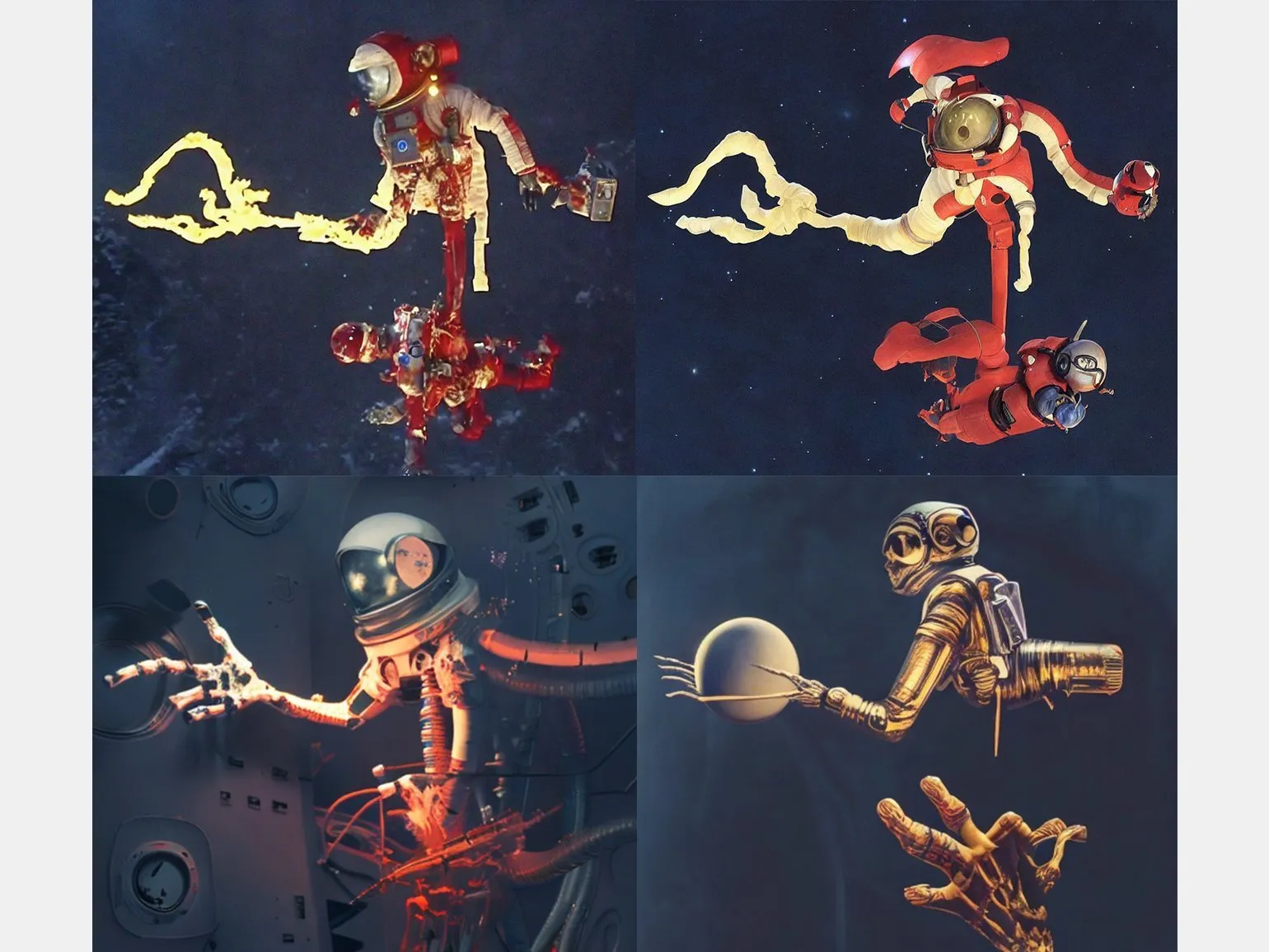 В ходе эксперимента я использовал Stable Diffusion для генерации образа одного из боссов — астронавта. На тот момент у меня не были разработаны варианты его атак и механика боя. Эти элементы появились в процессе работы с нейросетью, что позволило создать уникальный игровой опыт.