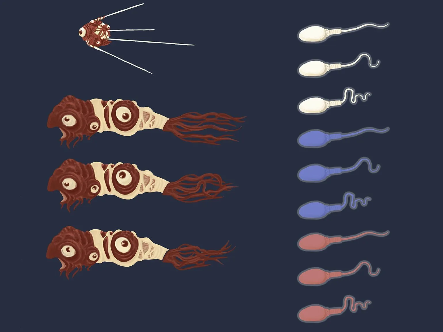 К сожалению, мои запросы оказались слишком узкоспециализированными, как и выбранный художественный стиль, поэтому мне часто приходится дорабатывать результаты нейросети. Тем не менее, я получил множество полезных референсов. Проведя несколько часов, экспериментируя с промптами и пресетами, я собрал идеи для создания десятка уникальных врагов для своей игры.