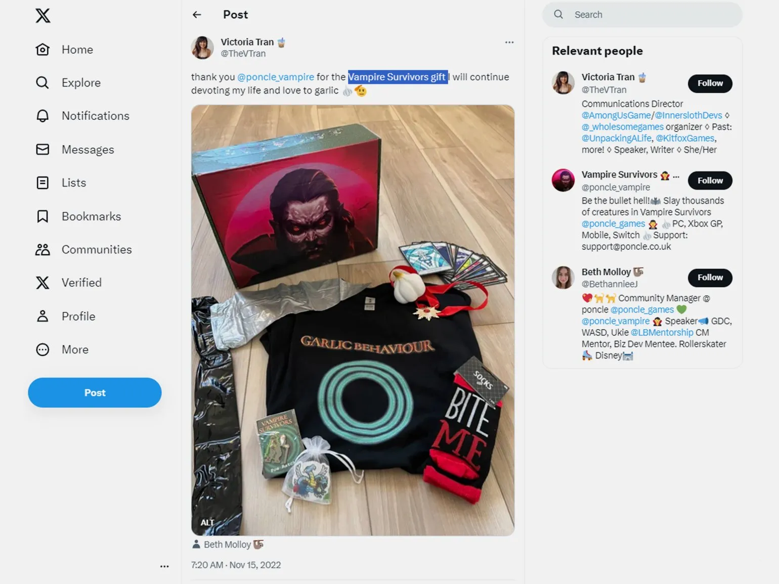 Как разработчику общаться с игроками в социальных сетях — пример Vampire Survivors / Skillbox Media