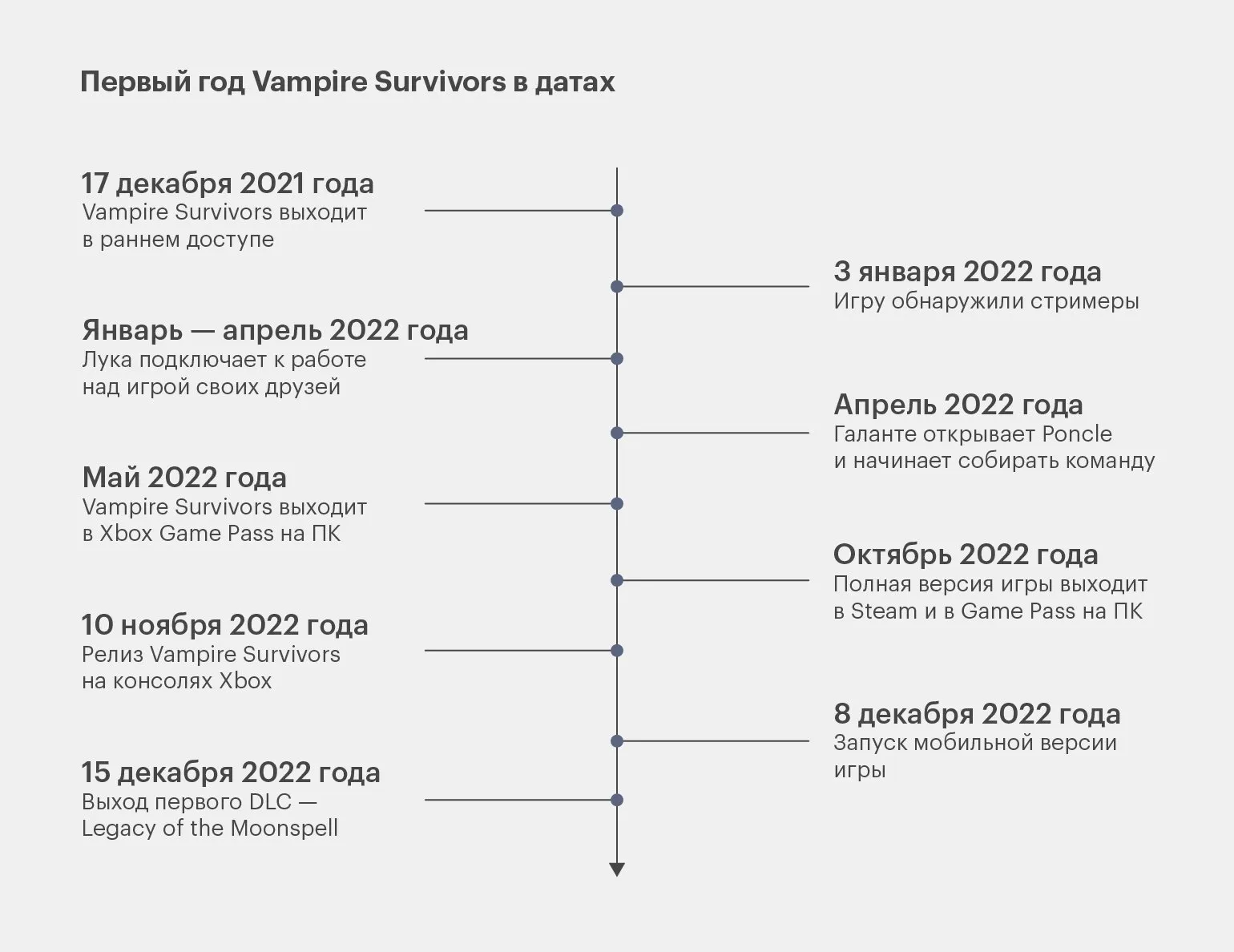 В 2022 году Vampire Survivors пережила ряд значительных событий, которые выделили её на фоне других популярных игр. Темпы разработки проекта были значительно выше, что свидетельствует о высоком уровне активности команды. Успехи в обновлениях, новые механики и контент сделали Vampire Survivors одной из самых обсуждаемых игр года.