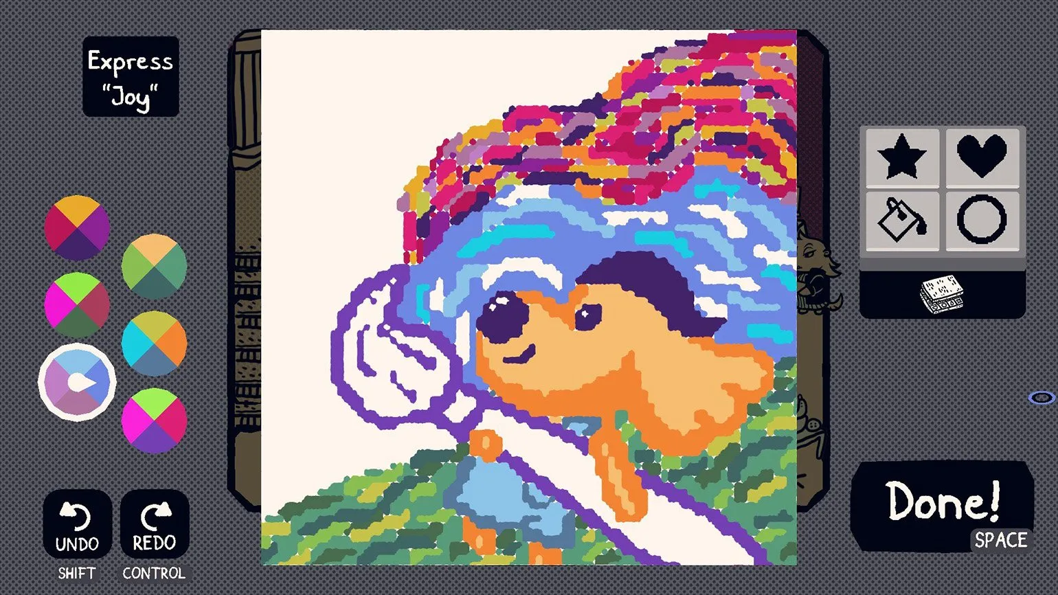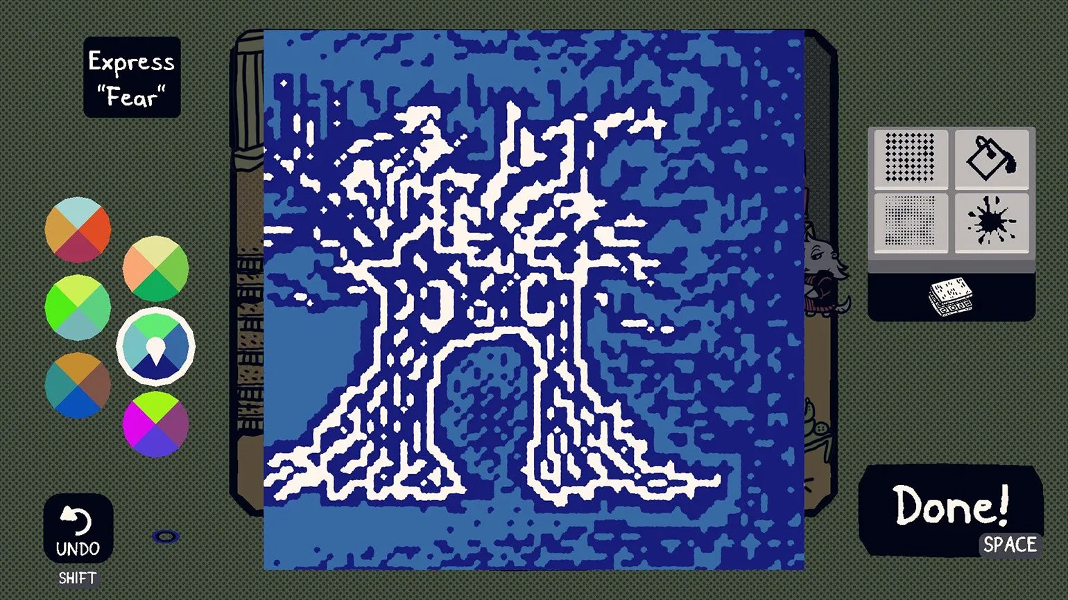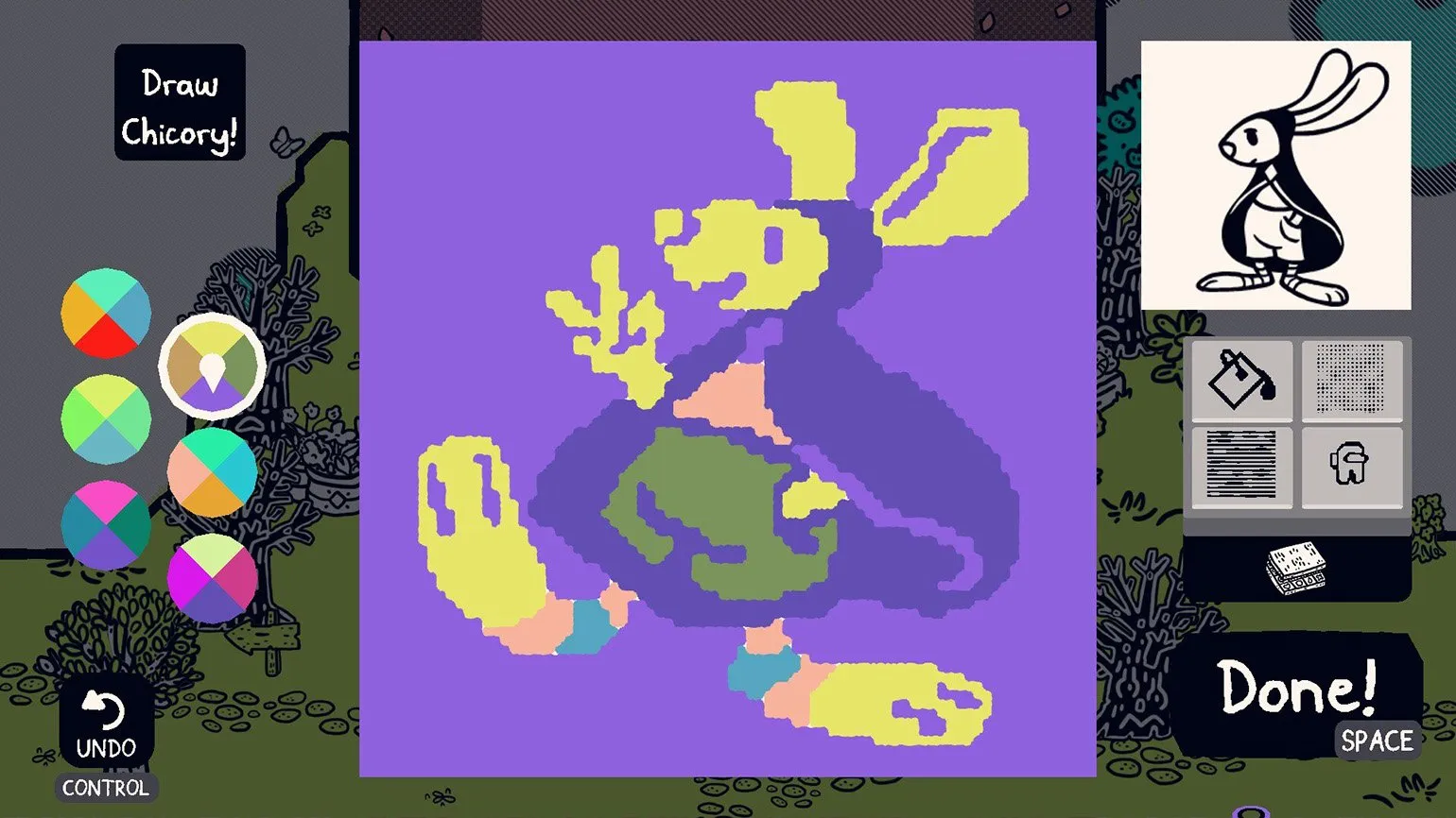 В отличие от многих других проектов, где рисование является второстепенным занятием и не всегда включает идею самовыражения, в игре Chicory свободное творчество занимает центральное место. Во время разработки Грег сформулировал ряд принципов, которые позволили ему естественно интегрировать рисование в игровую механику и создать мотивацию для игроков.