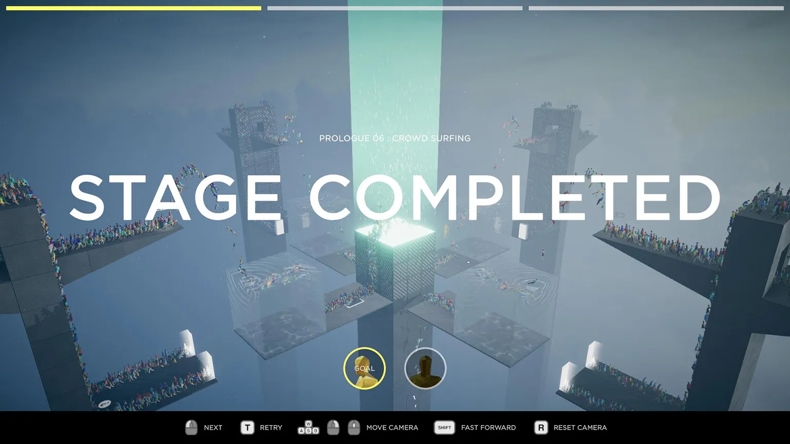 Из светящегося силуэта огромной двери вытекает бесчисленная толпа. Поток невозможно остановить, но его можно регулировать, направляя людей в нужное направление с помощью знаков и стрелок. Эти указатели помогут людям разворачиваться, прыгать или выполнять другие команды. Вам предстоит преодолевать сложные уровни, продумывая каждое действие заранее, как в шахматной партии, и постоянно экспериментировать с различными стратегиями.