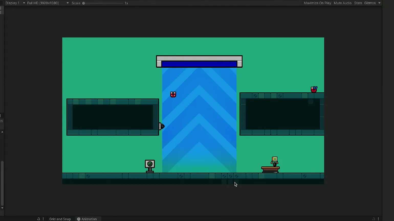 - Создать эффекты воды. С помощью текстуры и шейдера, смещающего пиксели, Браун «затопил» нижнюю часть уровня.