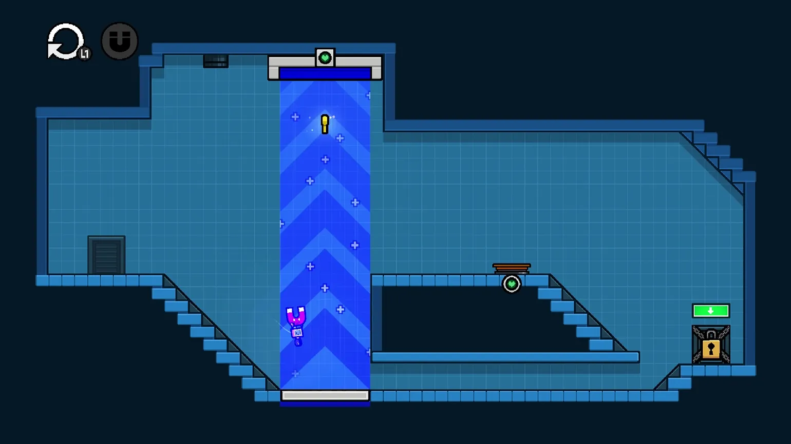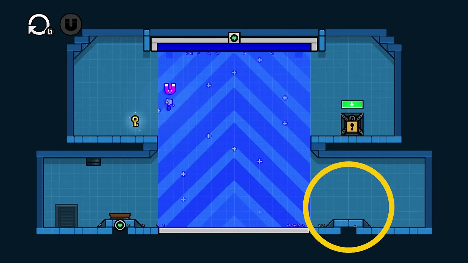 Разгадка заключается в следующем: после того как робот подберет ключ, необходимо отключить луч с помощью кнопки, затем переместить Магнуса вправо, снова активировать луч, войти в него с магнитом и подняться к выходу с уровня. Тем не менее, плейтестеры не смогли догадаться до этого решения.