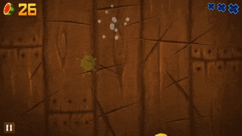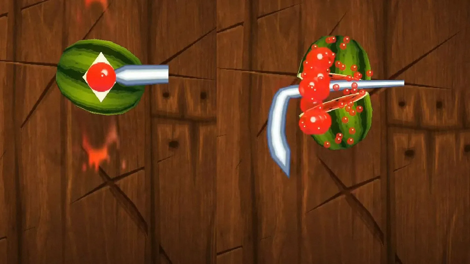 При более внимательном рассмотрении становится очевидно, что объект быстро поворачивается нужной стороной. Разработчики успешно скрыли этот момент при помощи брызг сока, которые возникают при каждом рассечении. В целом, данный прием оказался эффективным.