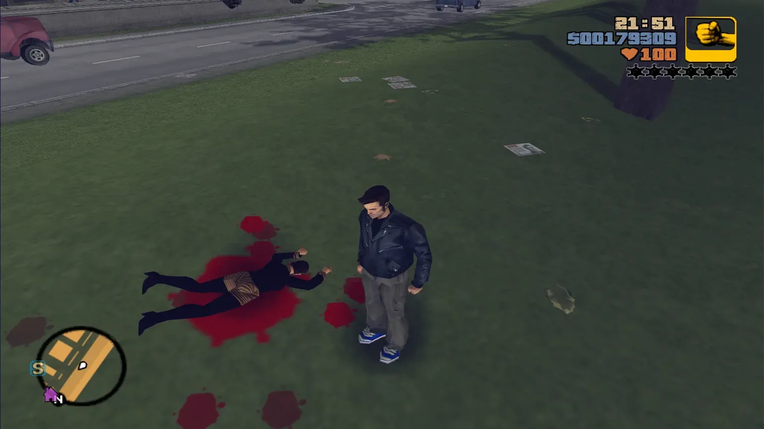 GTA 3 запомнилась своей жестокостью, но благодаря ироничному тону и несерьёзному отношению к сюжету, насилие воспринималось как комичное и гротескное. Кровь выглядела мультяшно, а пешеходы исчезали под колесами автомобилей с забавными звуками. Этот уникальный подход к изображению насилия стал одной из отличительных черт игры, привлекая внимание игроков и формируя культовый статус GTA 3 в мире видеоигр.