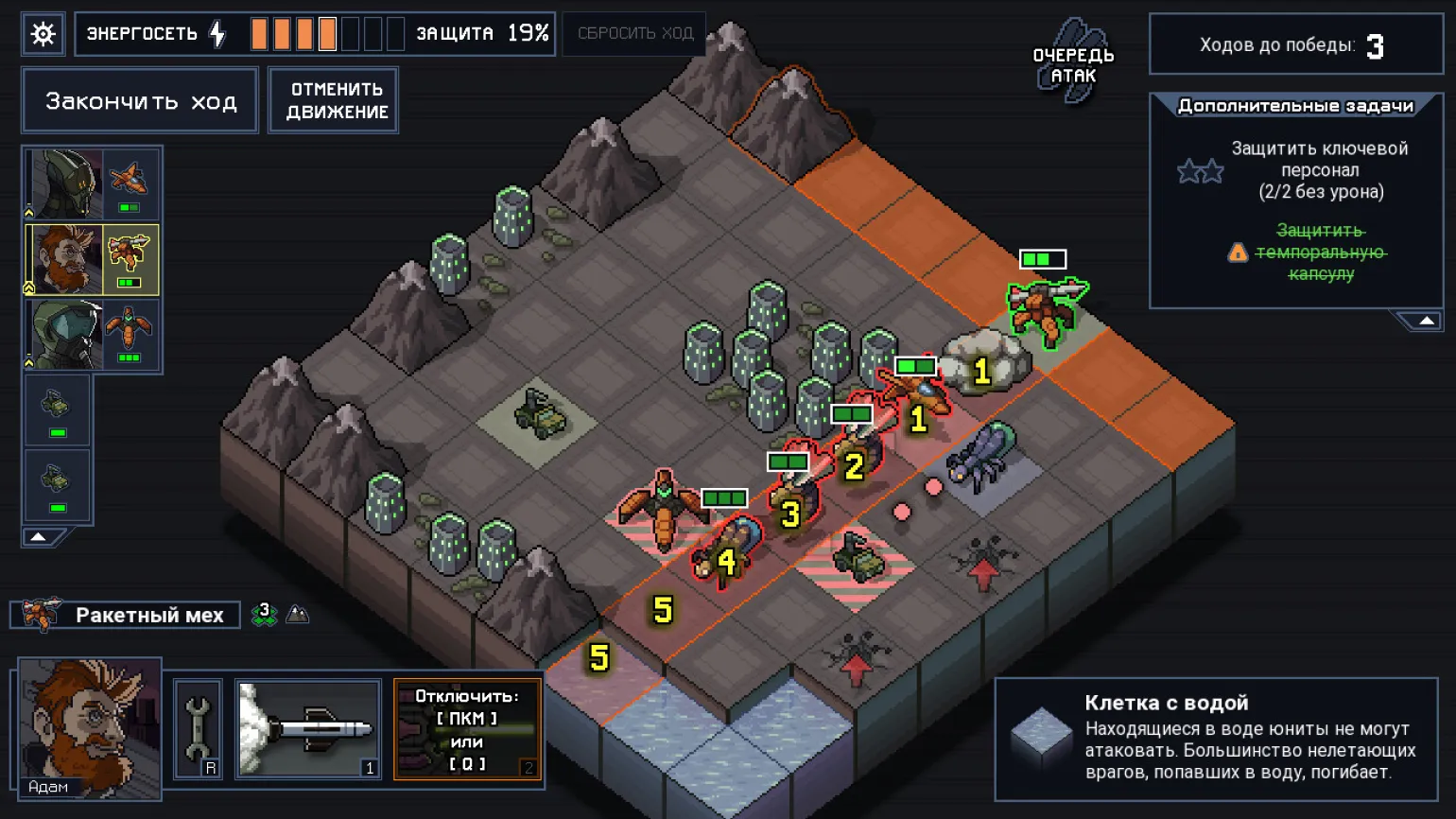 Into the Breach — это уникальная пошаговая стратегия, которая погружает игроков в увлекательный фантастический мир. В этой игре вам предстоит управлять отрядом мехов, сражающихся против чудовищ, угрожающих человечеству. Тактический геймплей требует продуманного планирования и стратегического мышления, чтобы одержать победу в сложных битвах. Каждый ход имеет значение, и ваши решения могут изменить ход истории. Погрузитесь в Into the Breach и испытайте уникальный подход к жанру стратегий в реальном времени.