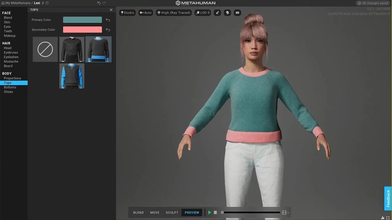 Обратите внимание, что некоторые ассеты для 3D-моделей, такие как прически и бороды, по-прежнему находятся на стадии разработки. В связи с этим они отображаются только на уровнях детализации LOD 1 и LOD 0.