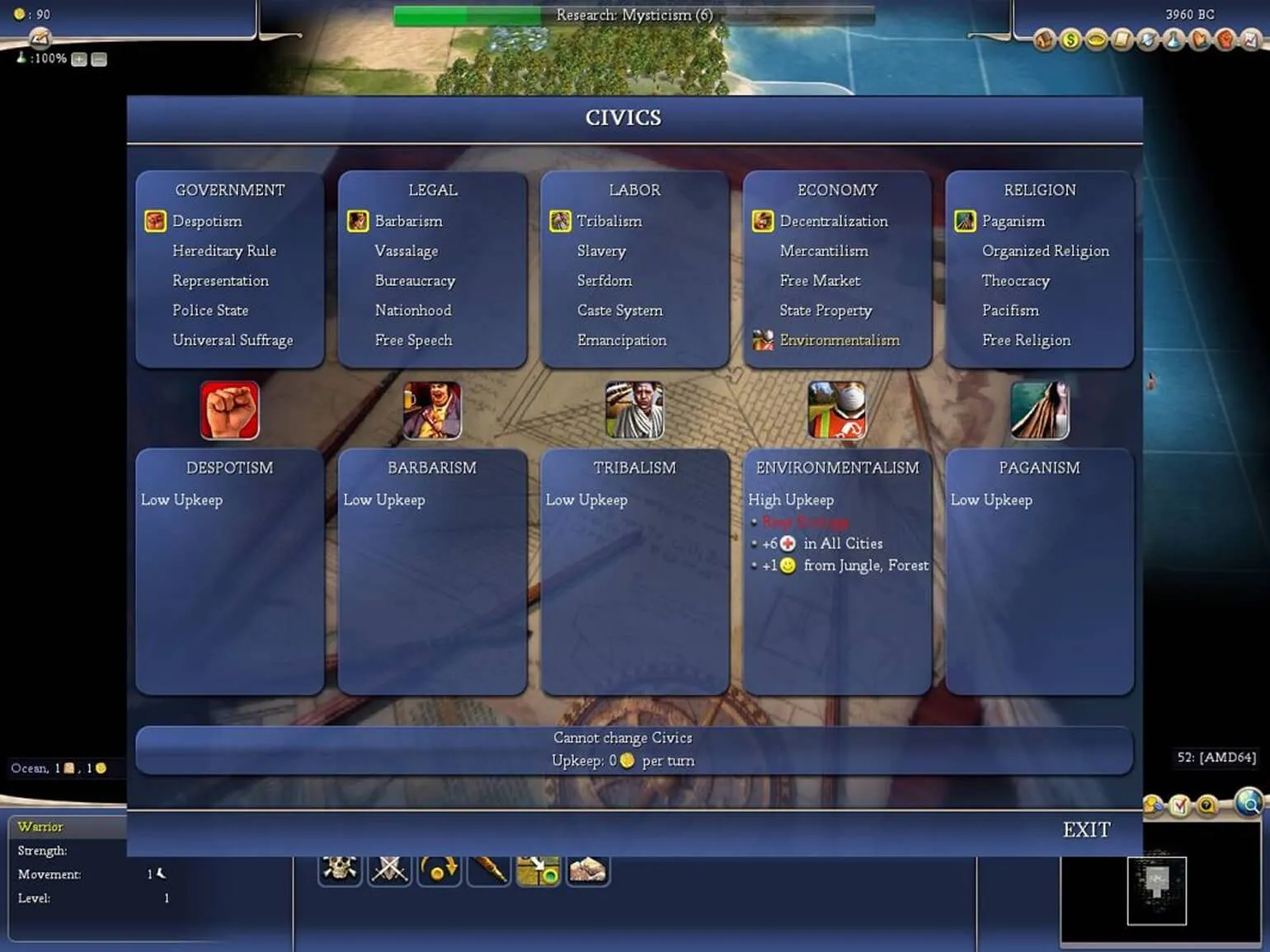 Каждая парадигма предоставляет уникальные преимущества и механики, такие как возможность призыва военных юнитов в городах. Переход между парадигмами ведет к анархии и приостановке производства, что добавляет элемент стратегии в игру. Парадигмы позволяют смешивать различные концепции, такие как полицейское государство, национальная идея, равноправие, меркантилизм и теократия. Эта система значительно увеличивает реиграбельность игры, позволяя игрокам экспериментировать и находить новые тактики.