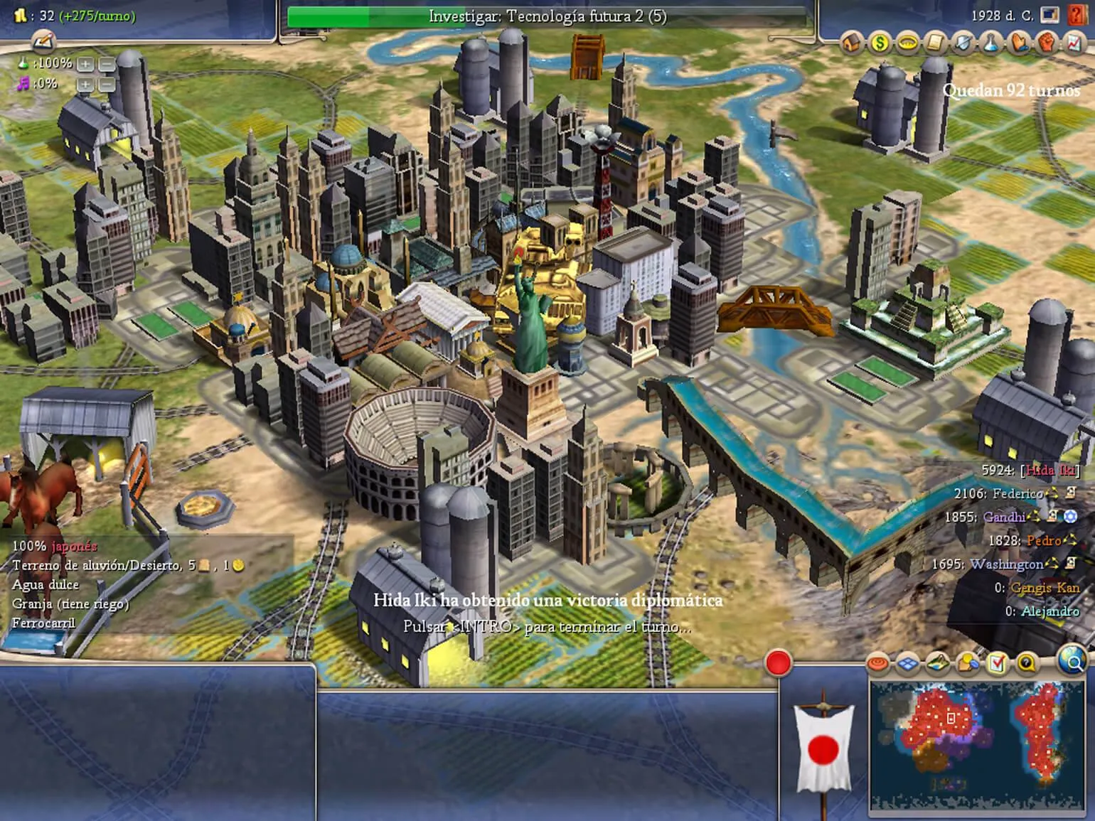 Важной особенностью игры являются Великие чудеса света. Каждое чудо можно построить только один раз за партию, и на это потребуется значительное количество ресурсов и времени. Тем не менее, строительство этих чудес предоставляет уникальные преимущества и способствует приближению вашей цивилизации к победе. В игре предусмотрены три основных условия для достижения победы: завоевание всех территорий, полет на космическом корабле к Альфе Центавра или накопление определённого количества очков, достигая 2100 года.