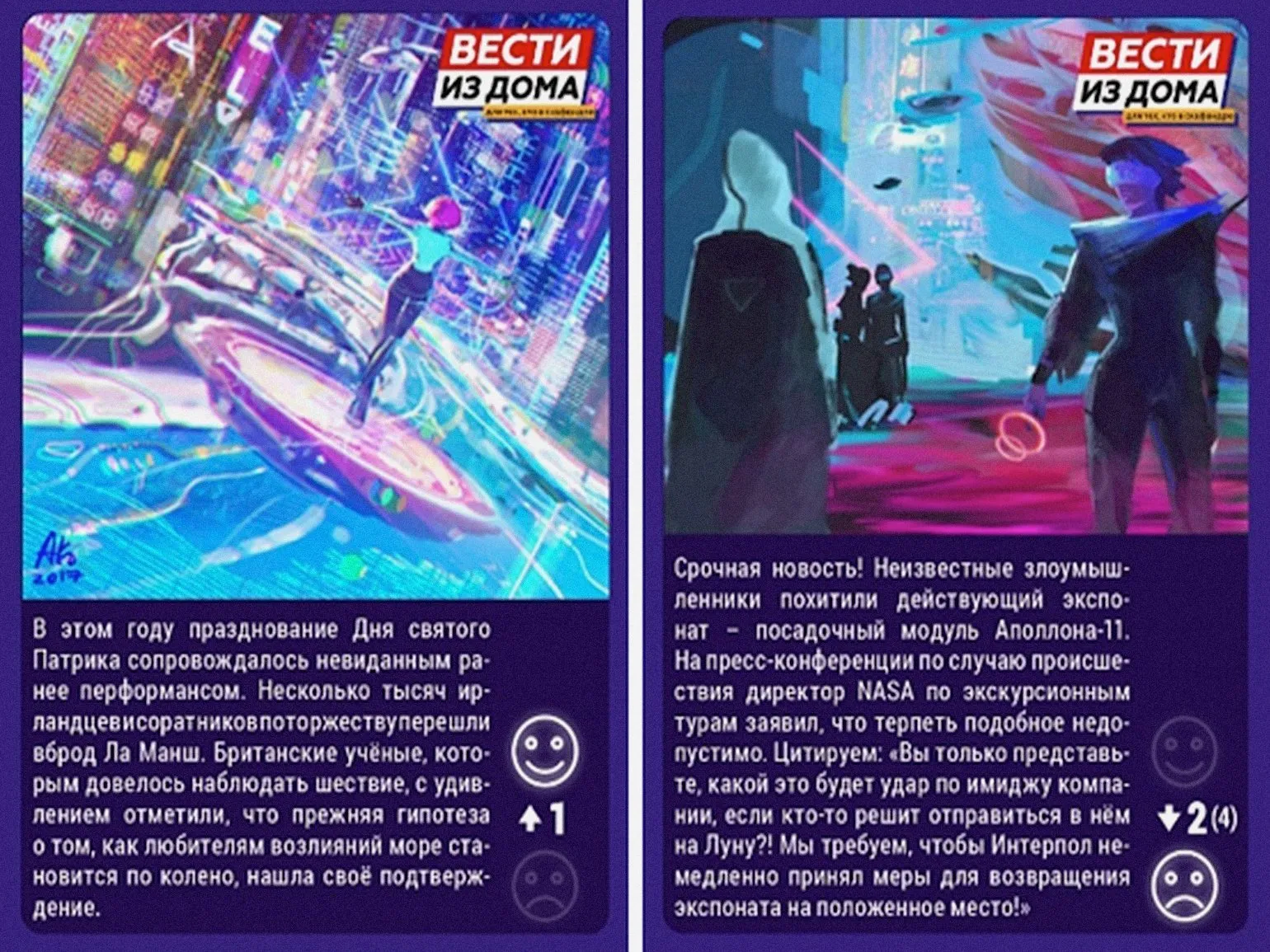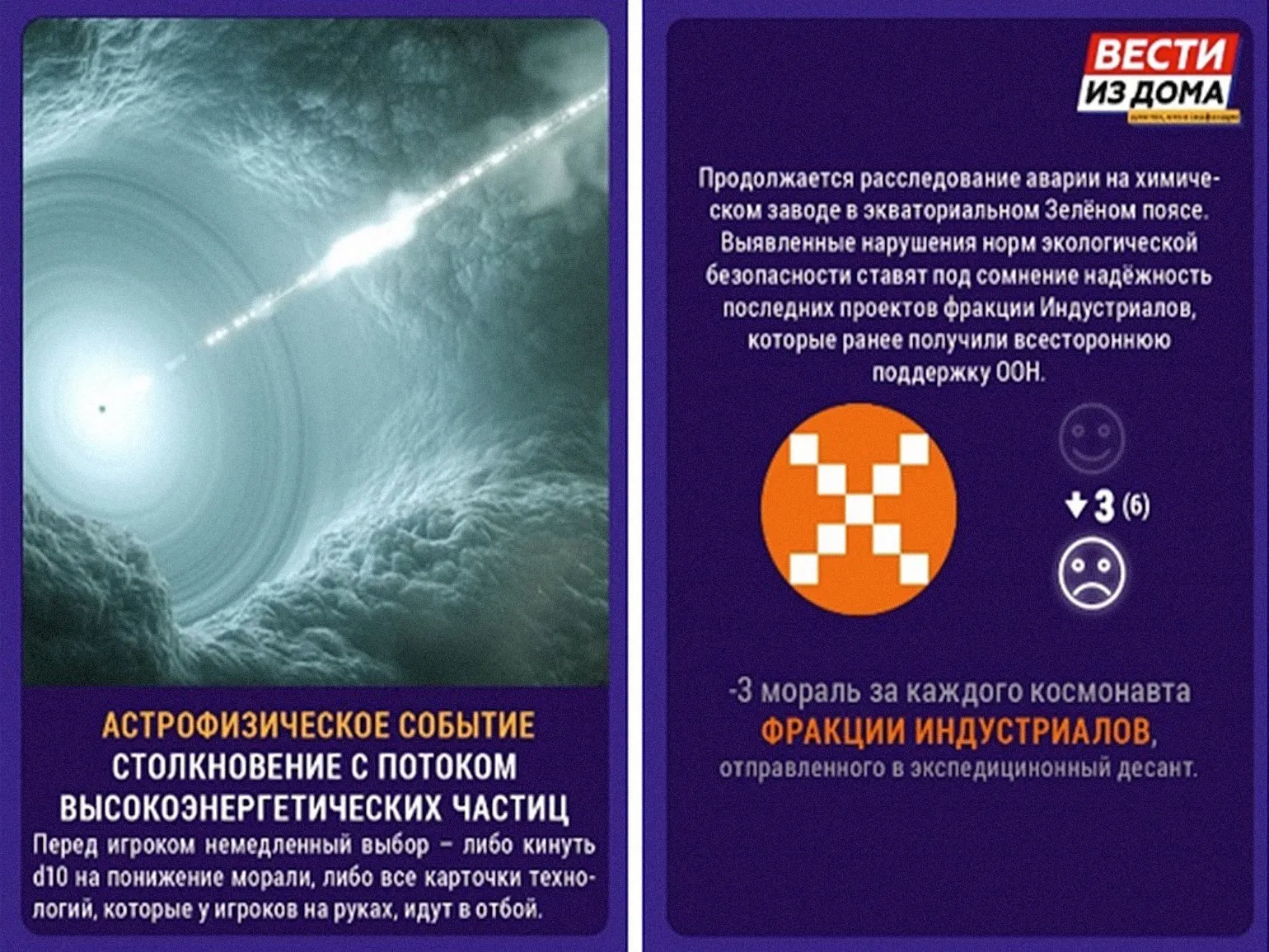Основными источниками моего вдохновения стали книги «Сильнее времени» Александра Казанцева и «Фабрика планет» Элизабет Таскер. Из видеоигр особое впечатление на меня произвели Outpost, Reunion и Sid Meier’s Alpha Centauri. В кино я был впечатлён фильмами «Интерстеллар» и «Пришелец». Последний, российский фильм, мастерски иллюстрирует конфликт медиаиндустрии с темой космоса. Этот конфликт также находит отражение в игре Patria Nova: пока космонавты исследуют новые миры, на Земле разворачивается реалити-шоу, а карточки событий «Вести из дома» влияют на моральный дух экипажа.