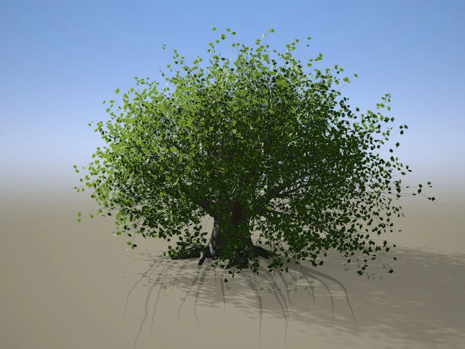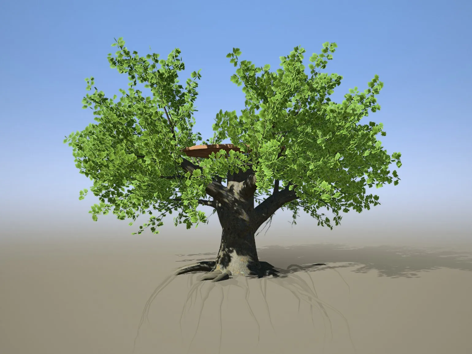 В результате было создано дерево с ветвями, которые наклоняются под воздействием фундамента будущего дома. Поскольку это является тестовой версией, импортировать новую модель в игру не удастся. Однако можно выполнить простой рендер, нажав кнопку F9. Это позволит визуализировать модель и оценить ее внешний вид в контексте игрового окружения.