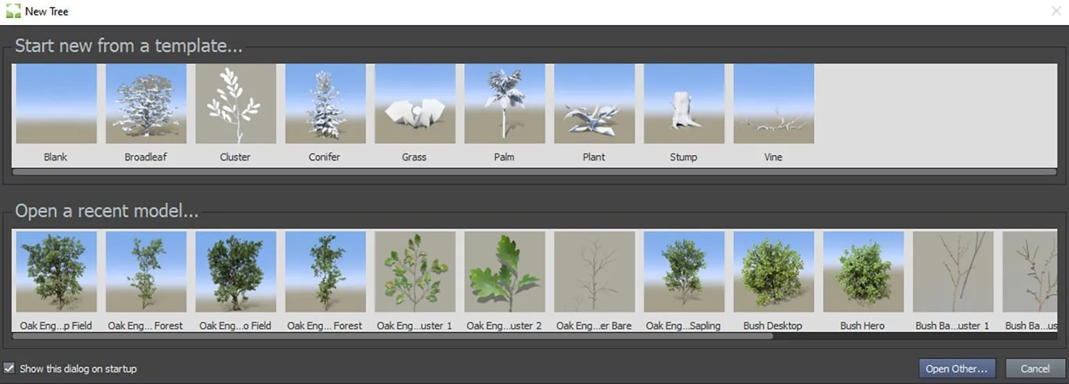 Стартовое диалоговое окно в SpeedTreeСкриншот: SpeedTree / Interactive Data Visualization, Inc