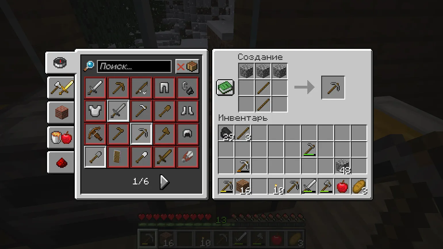 В данной игре крафт реализован оригинальным образом. Для создания предметов вам необходимо не просто собрать нужные ингредиенты на верстаке, а выложить их в виде силуэта предмета в сетке размером 3×3 клетки. Такой подход добавляет элемент стратегии и требует внимательности, что делает процесс крафта более увлекательным и интерактивным.