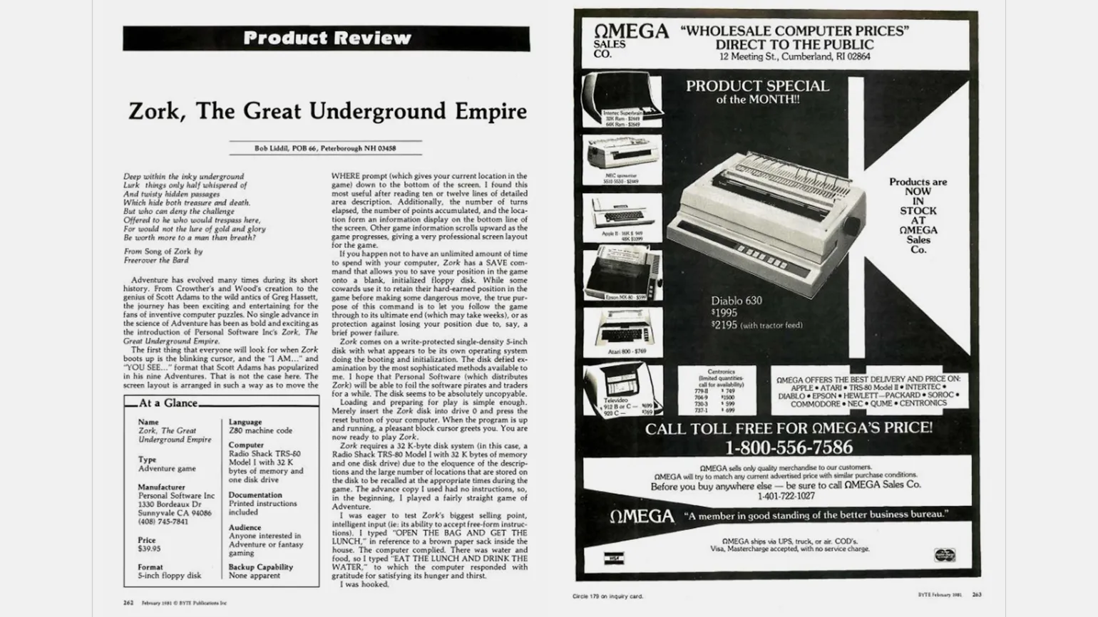 Текстовая адвенчура Zork, известная как The Great Underground Empire, является одной из первых игр, в которой была внедрена функция сохранения с помощью пароля. В рецензии на эту игру, опубликованной в журнале Byte в 1981 году, упоминается важность этой функции для игрового процесса. Система паролей позволила игрокам возвращаться к своим приключениям, не теряя прогресса, что значительно повысило интерес и вовлеченность в игру. Zork стала ярким примером того, как текстовые игры могут предлагать глубокий и интерактивный опыт, открывая новые горизонты для жанра.