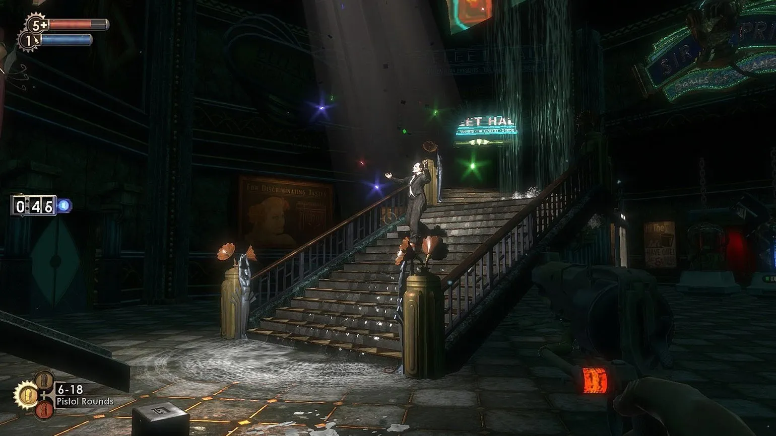 Философия Айн Рэнд стала основой для создания общества Восторга, разработанного миллиардером Эндрю Райаном. Этот город задумывался как подводная утопия, где художники свободны от цензуры, ученые не ограничены ханжескими нормами, а сильные личности не подчиняются слабым. Однако, когда мы впервые попадаем в город в начале 1960 года, перед нами предстает мрачная реальность: трупы, агрессивные мутанты и затопленные интерьеры. Восторг, который изначально имел потенциал стать символом свободы и прогресса, оказался в упадке, демонстрируя последствия игнорирования гуманистических ценностей.
