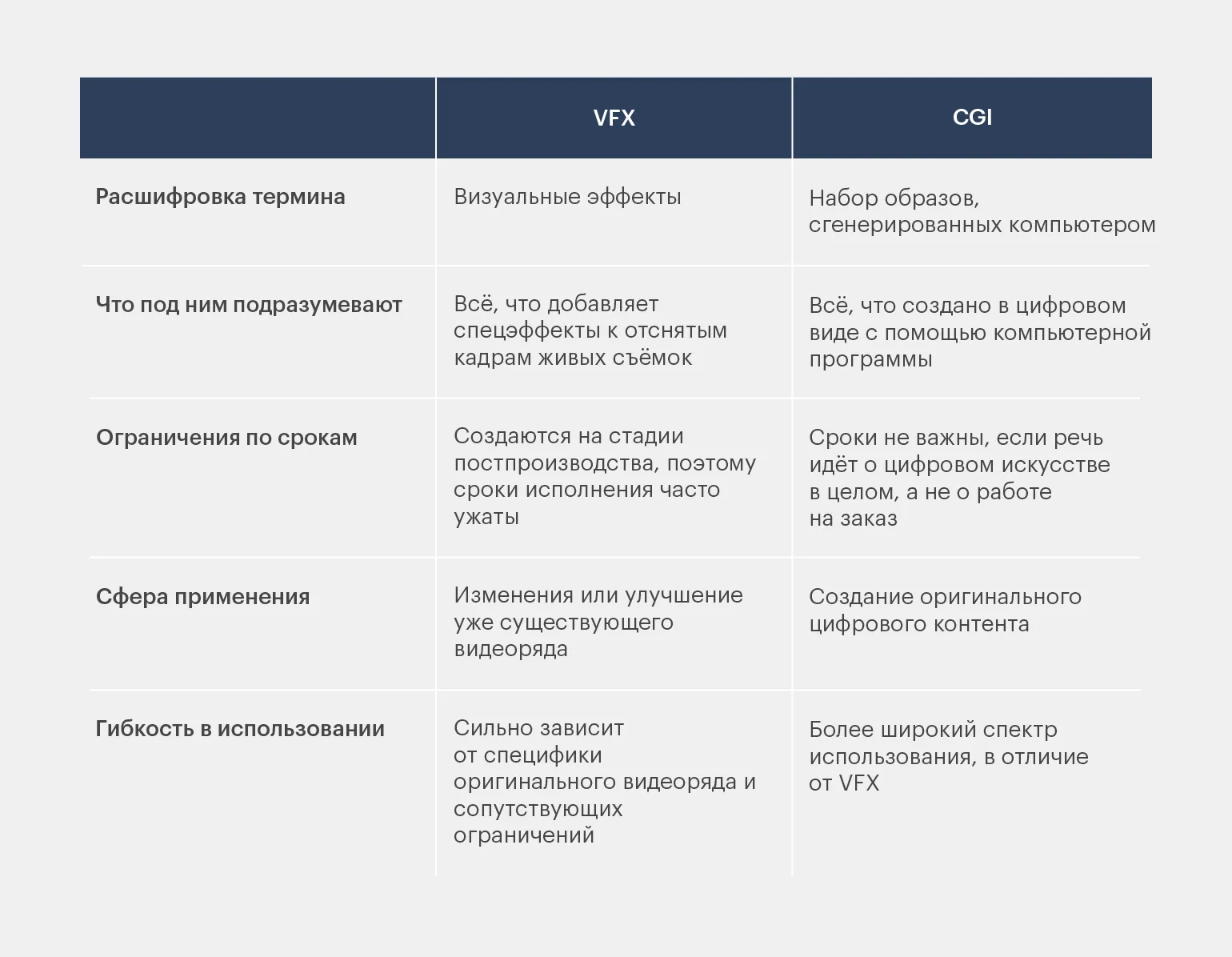Сравнение VFX и CGI. Инфографика: Майя Мальгина для Skillbox Media