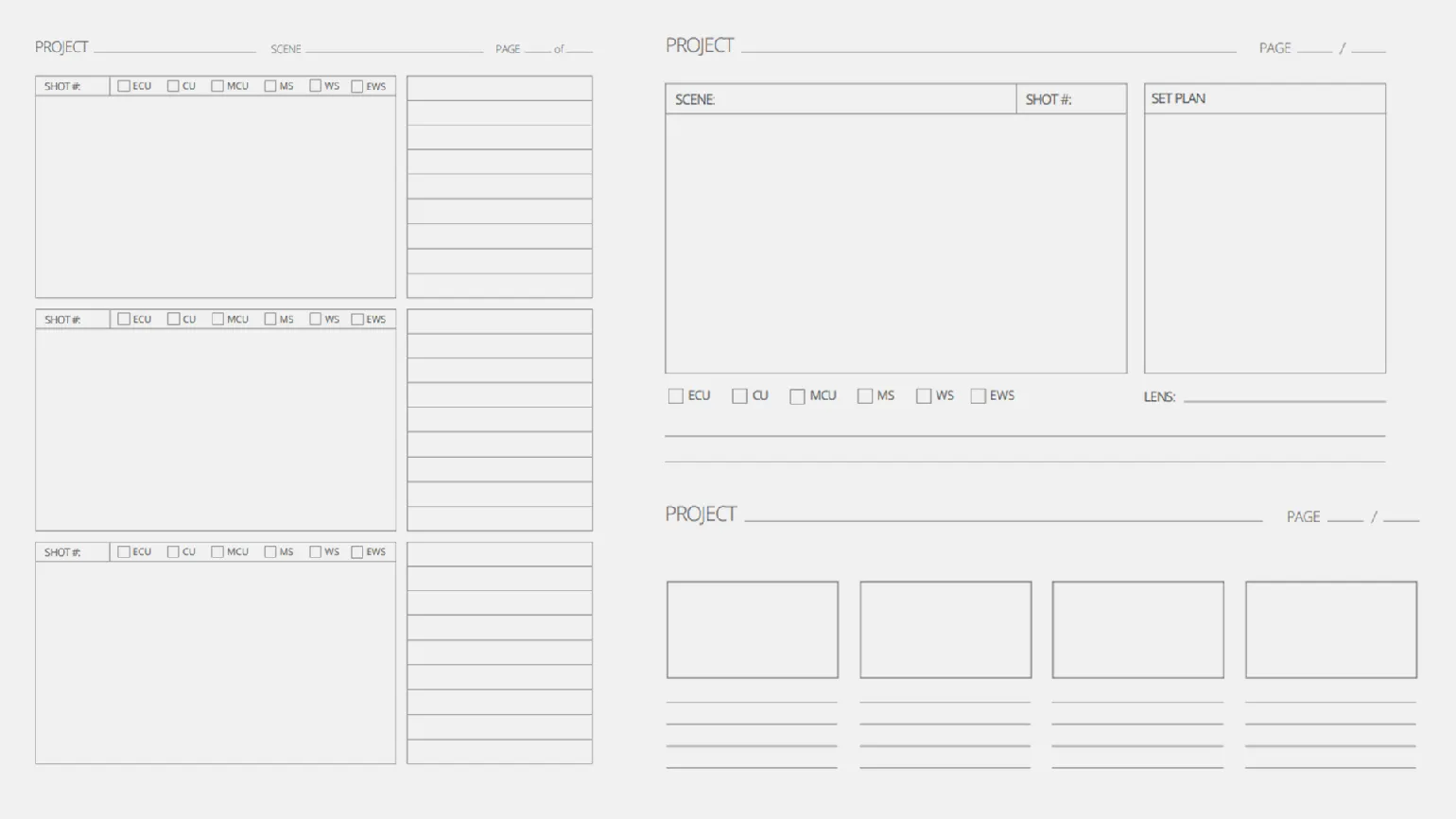 Шаблоны раскадровок доступны для скачивания в интернете. На сайте StudioBinder можно найти архив с раскадровками в различных вариантах, которые готовы к печати в формате А4. В этих шаблонах предусмотрено место не только для концепции кадра и краткого описания, но также возможно отметить крупность плана, используя сокращения на английском языке, а также указать ширину объектива. Такие шаблоны помогают организовать процесс съемки и упрощают визуализацию сцен.