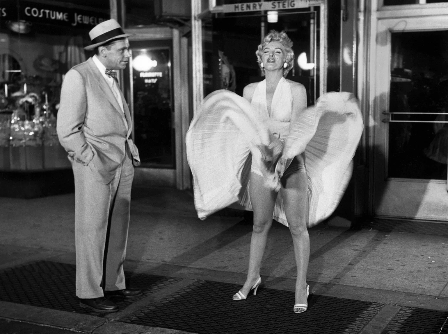 Во время работы над фильмом «Зуд седьмого года» режиссёр Билли Уайлдер организовал знаковую съёмку сцены с Мэрилин Монро, где она в белом платье стоит над вентиляционным люком метро. Для этого события он пригласил репортёров и фотографов со всего Нью-Йорка, чтобы запечатлеть момент для продвижения фильма. Каждый раз, когда юбка Мэрилин поднималась, толпа реагировала оглушительным восторгом. Однако отснятый материал не подошёл для использования в фильме, и сцену пришлось переснимать в студии. Вероятно, Уайлдер изначально задумывал это событие как рекламный трюк для создания ажиотажа вокруг картины.