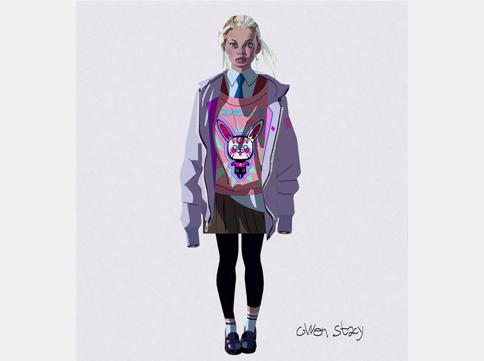 Во второй части анимационной трилогии Гвен Стейси переживает значительный личностный рост. Её мир изображён в акварельных розово-мятных тонах, создавая уникальную атмосферу. Люди и места вокруг неё часто становятся размытыми, как будто растворяются в разноцветной массе, что символизирует её внутренние переживания и эмоциональную неустойчивость. Эта визуальная эстетика усиливает ощущение трансформации и неопределённости, с которыми сталкивается Гвен на своём пути.