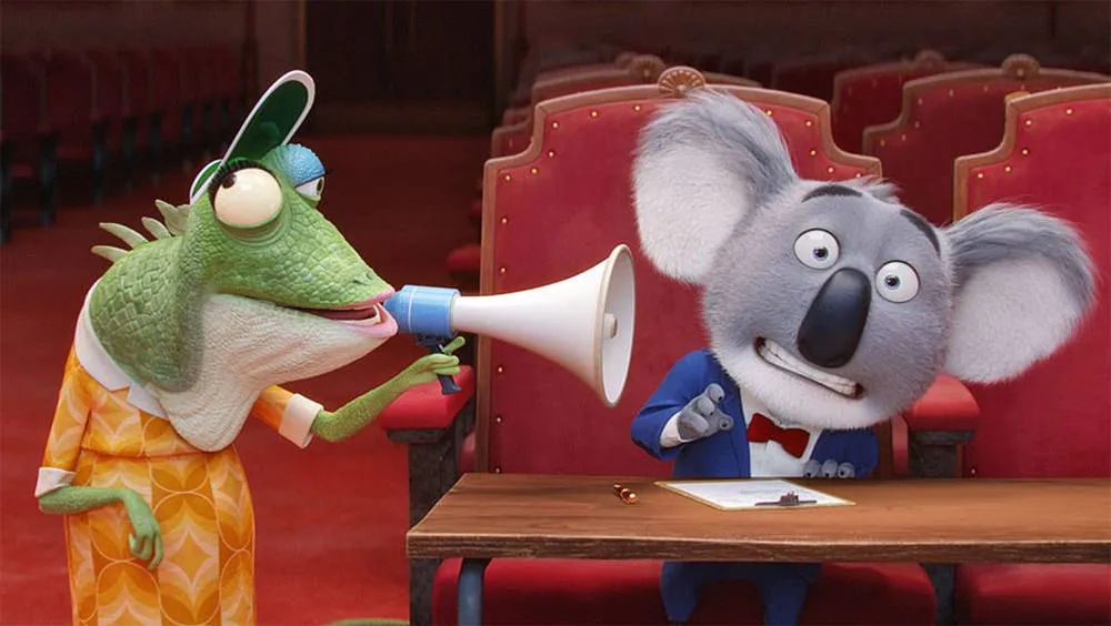 Главный герой, владелец театра коала Бастер Мун, претерпел значительные изменения по сравнению с первоначальной версией. Он не отвечает на звонки своей сотрудницы из банка и постоянно находится в поисках средств для погашения долгов. Дженнингс вспоминает, что в ранних черновиках персонаж Муна воспринимался как мошенник. Создание таких сложных персонажей требует внимательности, так как существует тонкая грань между харизмой и отталкивающим образом. Дженнингс и Меледандри осознали, что изначально Мун мог показаться слишком грубым для детской аудитории, и внесли изменения в концепцию, чтобы сделать его более привлекательным и симпатичным для зрителей.