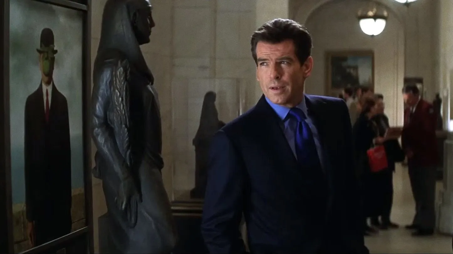 Картина «Сын человеческий» играет ключевую роль в фильме, появляясь несколько раз. В первый раз она мелькает в доме главного героя, когда он возвращается после удачного похищения шедевра Моне. Позже Краун сам примеряет стиль мужчины с полотна, когда готовится к повторной афере в Метрополитен-музее. Он надевает котелок и черное пальто, что помогает ему осуществить очередной трюк. Нанятые им подставные лица одеваются точно так же, как он, что позволяет герою незаметно покинуть место преступления. Такой подход к маскировке и обману зрителя подчеркивает мастерство Крауна как преступника и создает напряжение в сюжете.