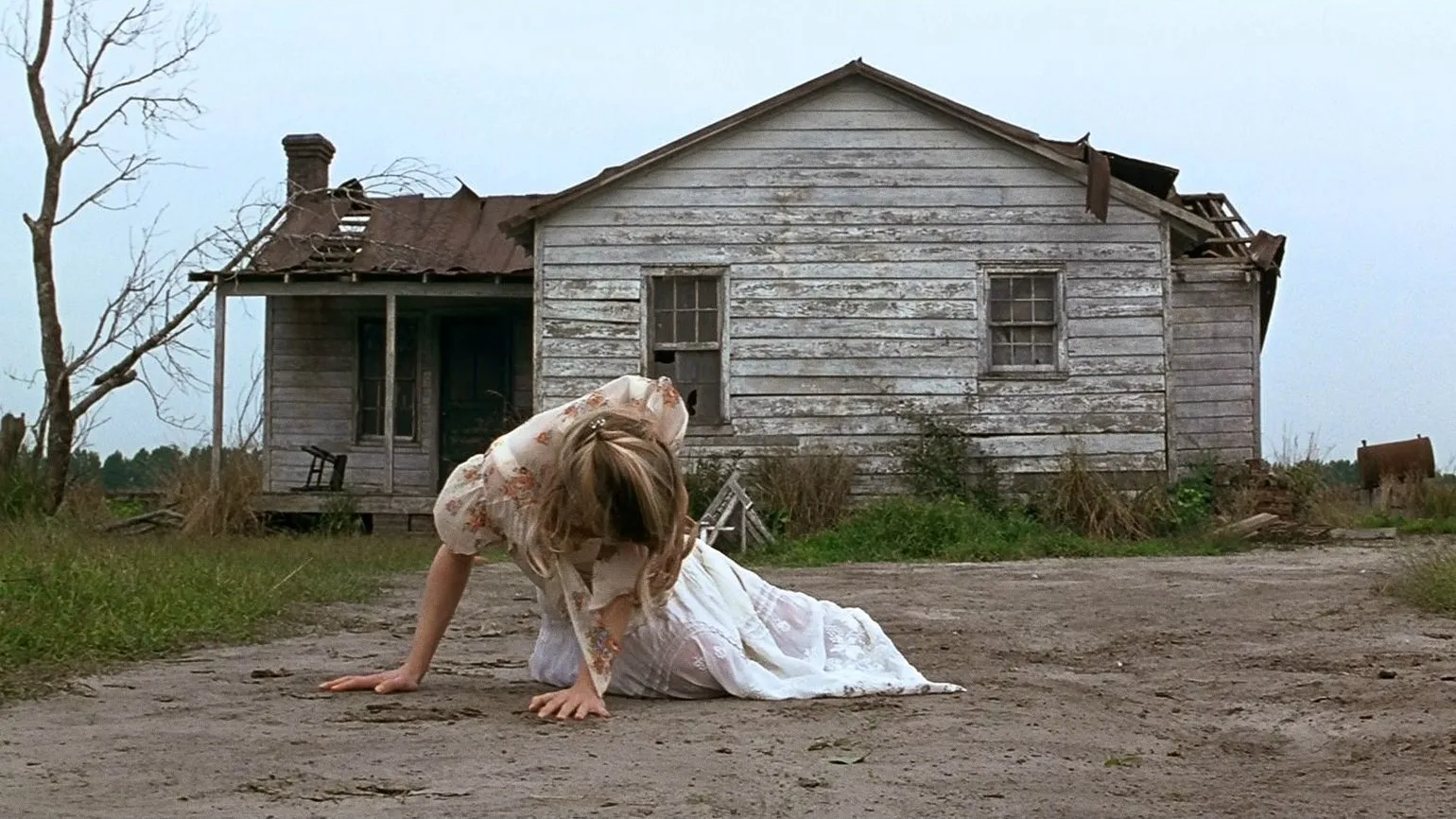 Детские травмы преследовали Дженни на протяжении всей жизни, и ей было необходимо хотя бы символически попытаться избавиться от призраков прошлого. В состоянии отчаяния она подбирает камни с земли и бросает их в дом, вспоминая о жестоких издевательствах отца. Измученная, Дженни падает на землю и плачет, в этот момент она напоминает героиню картины Уайетта. За её спиной серый деревенский дом, который перекликается со строениями на полотне художника. Этот эмоциональный момент подчеркивает глубокую связь между личными переживаниями и искусством, а также необходимость освобождения от боли, которая тянется из детства.