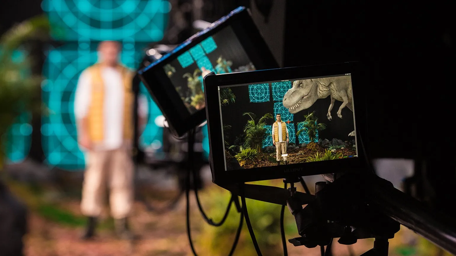 XOVP представил интересный проект — детское научно-популярное шоу «Гдекток», которое транслировалось на платформе Okko. В этом шоу исследователь совершает путешествия во времени, демонстрируя зрителям динозавров и вымерших морских обитателей. Команда проекта столкнулась с задачей не только создать фоновую анимацию с динозаврами на LED-экранах за ведущим, но и внедрить элементы взаимодействия с этими существами на переднем плане, подобно технологии дополненной реальности (AR). Операторы шоу имели возможность наблюдать динозавров на превью, что позволяло им эффективно выстраивать кадры и добиваться качественного визуального результата.