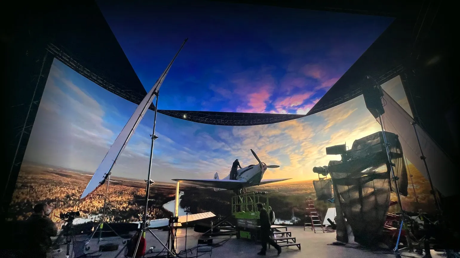 Создание реалистичных сцен для кино всегда представляет собой сложную задачу, особенно когда речь идет о натурных съемках. К сожалению, такие сцены могут оказаться не столь впечатляющими, как хотелось бы. В нашем фильме мы разработали уникальный подход, интегрировав в традиционный виртуальный продакшен элементы реальной съемки. Мы использовали отснятые пролеты, которые в реальном времени выводились на экран, добавляя к ним CG-самолеты и визуальные эффекты, созданные с помощью Unreal Engine. Для этих съемок был задействован экран, который является самым большим в СНГ и ранее считался самым крупным в Евразии, что значительно повысило качество и зрелищность нашего проекта.