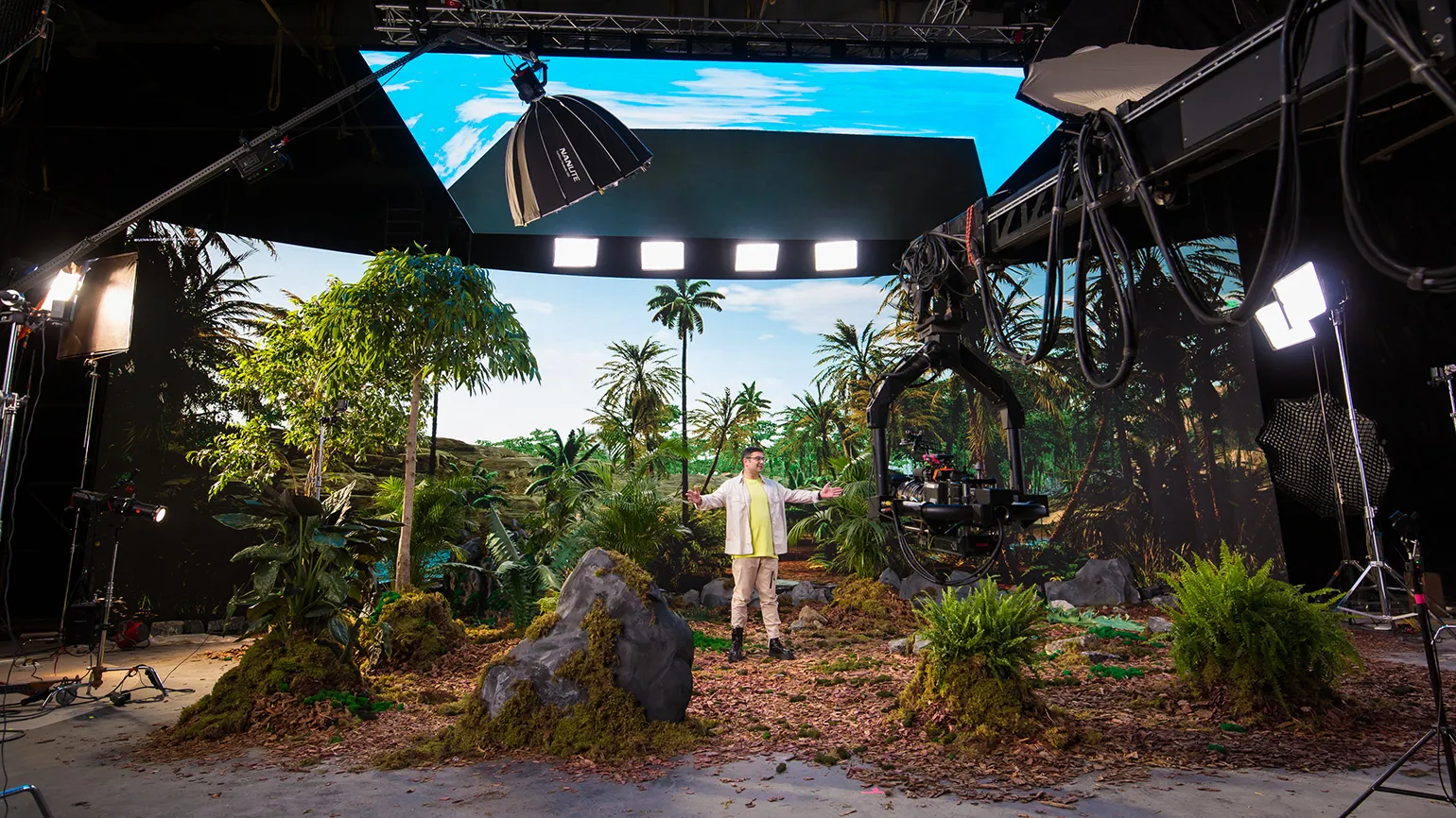 Виртуальное производство идеально подходит для сцен, в которых физическое присутствие человека невозможно, а также для ситуаций, где законы физики не имеют значения. В виртуальной среде, транслируемой на экраны, можно в реальном времени отключить гравитацию, позволяя объектам свободно парить в воздухе, или изменить ориентацию пространства, например, перевернув комнату вверх дном. Эта технология открывает новые горизонты для креативных решений в кино и телевидении, позволяя режиссерам и сценаристам реализовывать самые смелые идеи без ограничений, связанных с реальным миром.