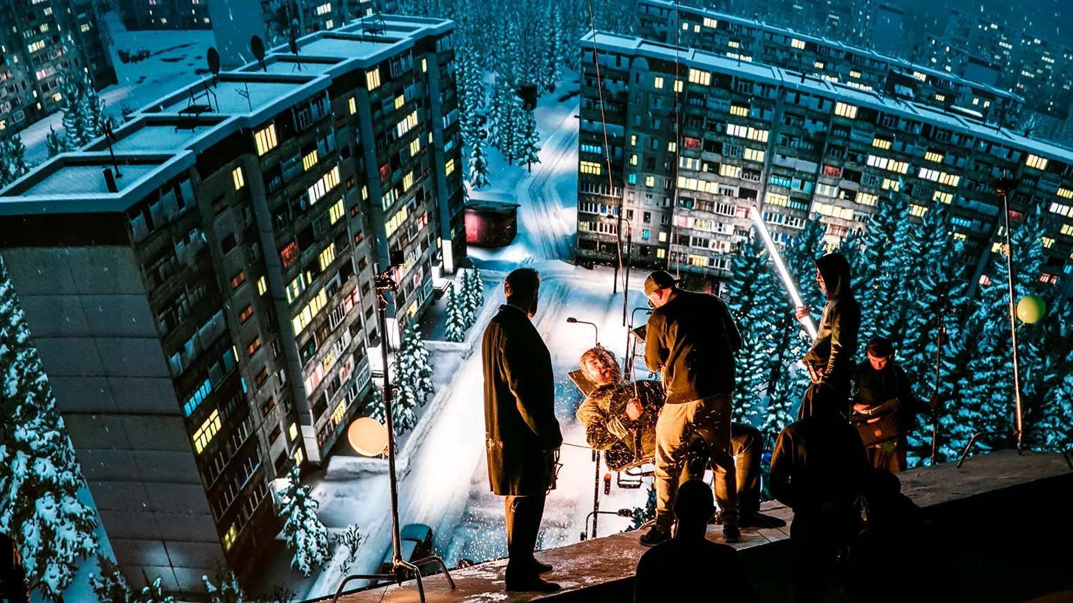 Во время одной смены мы сначала сняли интерьер квартиры, а затем сразу перешли к съемкам на крыше, где актера подвешивали на тросах. Таким образом, за одну смену нам удалось перейти от съемок в помещении к внешним сценам.