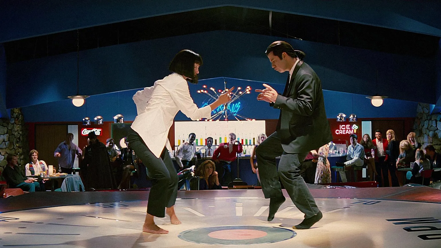 Фильм «Криминальное чтиво» не только популяризировал черные приталенные костюмы, но и ввел в моду женские укороченные брюки, как у героини Мии Уоллес, сыгранной Умой Турман. На первый взгляд, стиль Мии может показаться простым, однако он содержит множество отсылок и цитат. Например, стрижка, челка и цвет волос Мии были заимствованы у персонажа Анны Карины из фильма «Банда аутсайдеров» Жана-Люка Годара. Вдохновение для образа супруги мафиози, ее увлечение кокаином и манера речи были почерпнуты у Мишель Пфайффер из «Лица со шрамом» Брайана де Пальмы. Белая рубашка и черные брюки Мии отсылают к образам из «Бешеных псов»: по словам Тарантино, Миа на самом деле является одной из членов банды. Такой сложный и многослойный стиль героини подчеркивает богатую киноисторию и влияние, которое Тарантино оказал на современную моду и культуру.