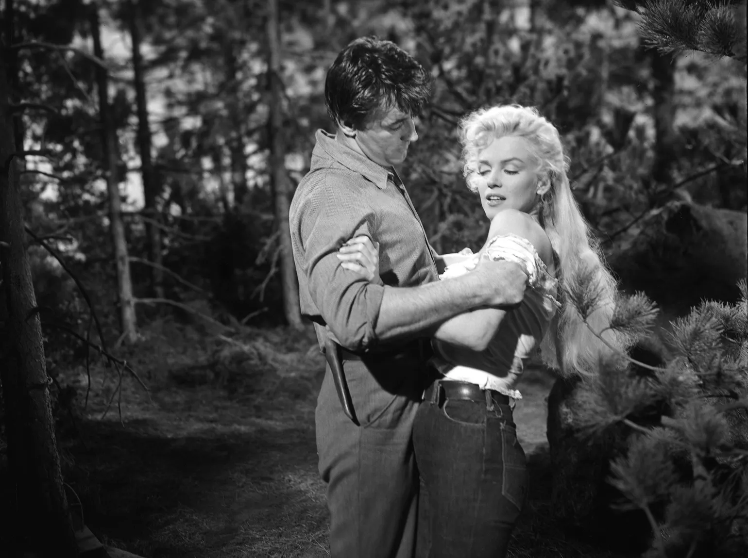 В женской моде джинсы становятся всё более популярными. Одним из главных амбассадоров джинсов в 50-х годах была Мэрилин Монро, которая с удовольствием носила деним как в повседневной жизни, так и на съемках фильмов. В качестве примера можно привести её выбор джинсов на высокой талии для фильма 1954 года «Река не течёт вспять». Этот стиль не только подчеркивал её фигуру, но и стал символом свободного и независимого образа жизни, что влияло на модные тенденции той эпохи и продолжает вдохновлять дизайнеров и модниц по сей день.