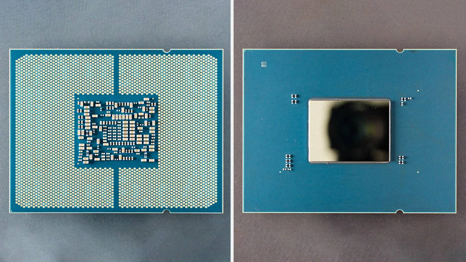 Удалив защитный слой, мы можем наблюдать кристалл процессора, на котором расположены полупроводниковые элементы.