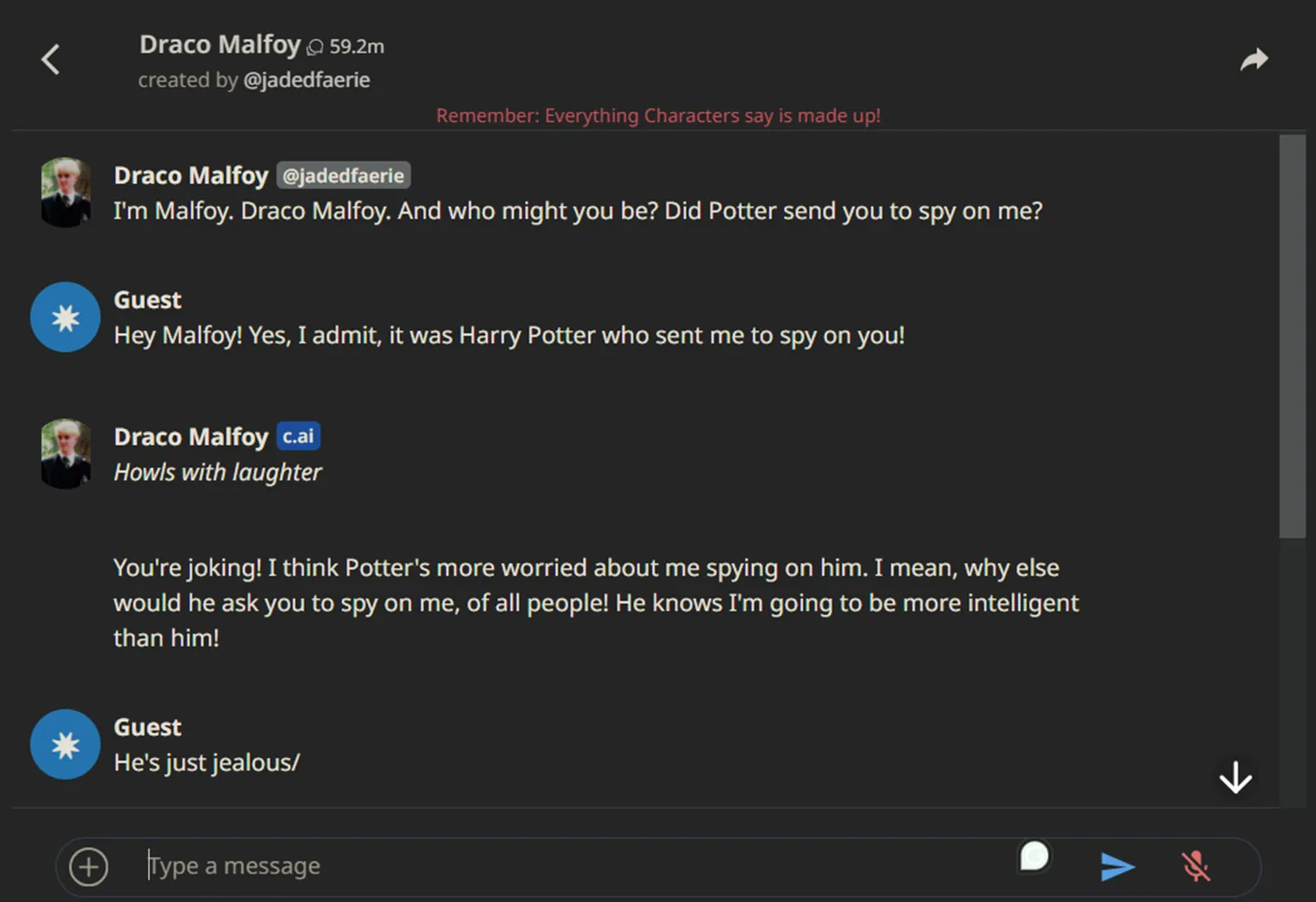 Теперь вы готовы к захватывающим диалогам! Вы можете обсудить с Драко его непростые отношения с отцом или развлечься, создавая разнообразные сценарии противостояния с Гарри Поттером. Эти обсуждения помогут глубже понять персонажей и их мотивацию, а также добавят интересные аспекты в ваши разговоры.