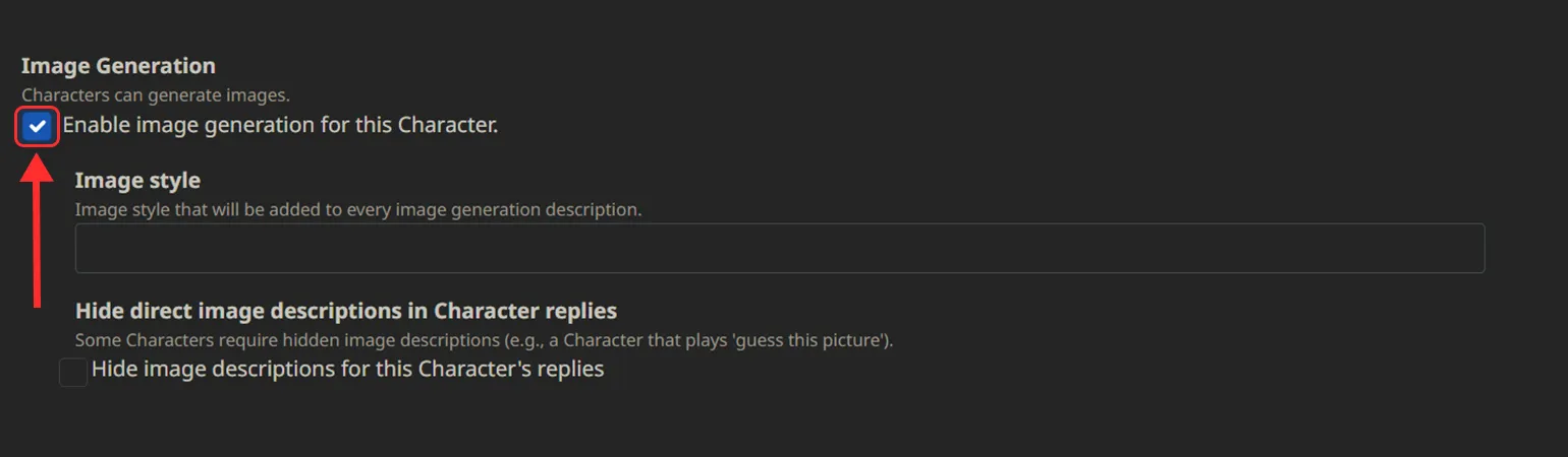 Чтобы активировать функцию генерации изображений в чате, отметьте галочку рядом с опцией ‘Генерация изображений’. Это позволит добавить визуальные элементы в ваше взаимодействие и улучшить пользовательский опыт.