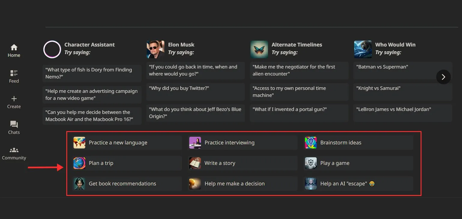 • Кроме знаменитостей и популярных персонажей, на Character AI доступны и функциональные чат-боты, такие как психологи, учителя, бизнес-партнеры или карьерные коучи, что делает платформу полезной в различных сферах.