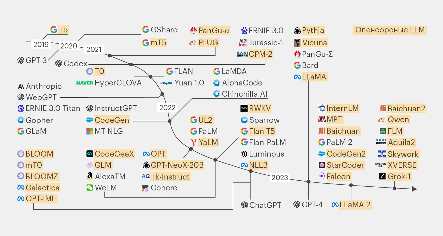В 2023 году значительный прорыв в массовом использовании нейронных сетей с открытым исходным кодом обеспечила модель LLaMA. На ее основе были разработаны десятки новых моделей, среди которых Mistral, Zephyr, Alpaca, Phi-2, Qwen, Yi и многие другие. Эти разработки способствуют расширению возможностей применения нейронных сетей в различных сферах, включая обработку естественного языка, искусственный интеллект и машинное обучение. Важно отметить, что открытый код моделей позволяет исследователям и разработчикам использовать и улучшать технологии, что способствует быстрому прогрессу в области искусственного интеллекта.