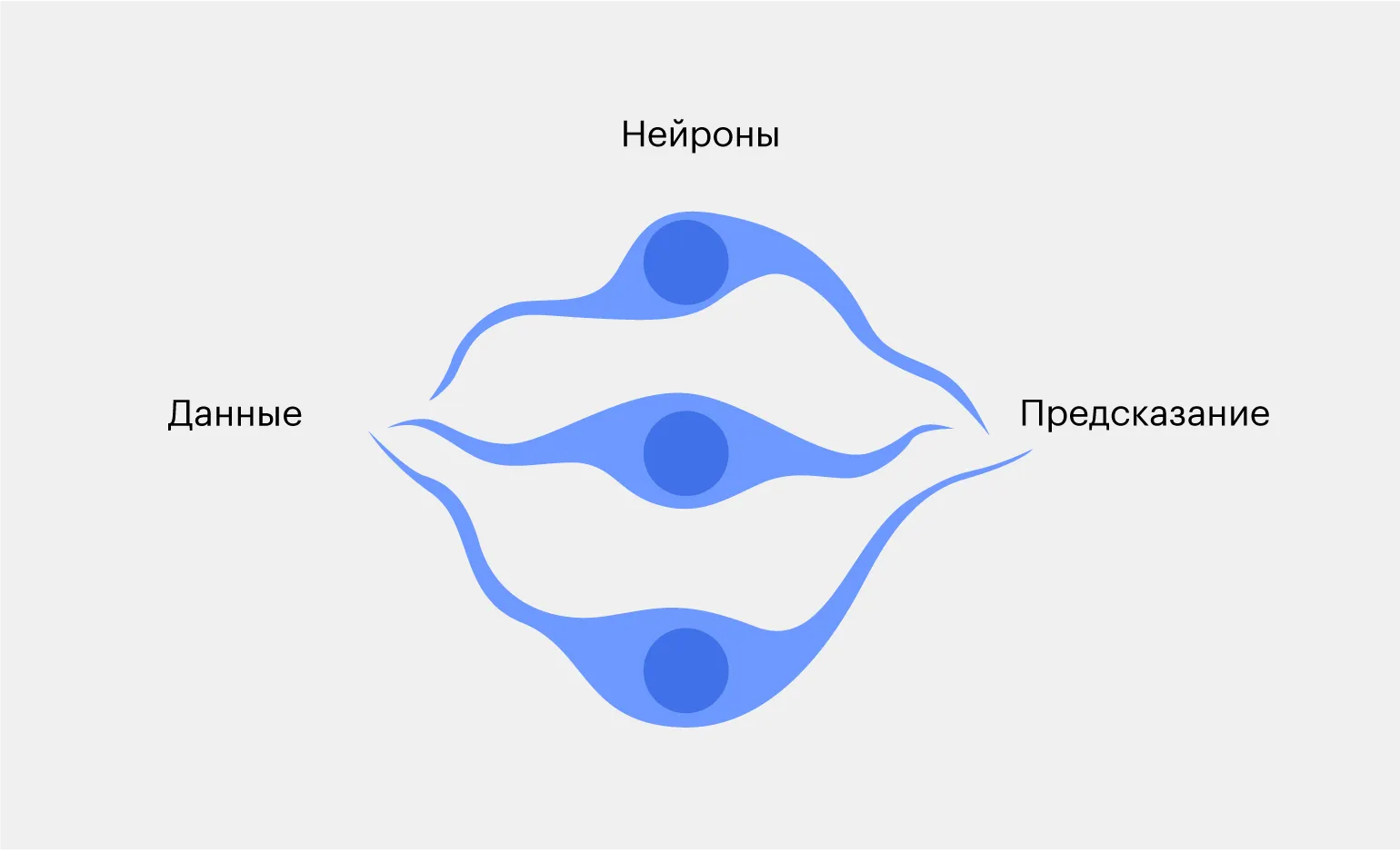 - Когда данные достигают выходного слоя, нейросеть формирует предположение на основе всей предшествующей обработки.