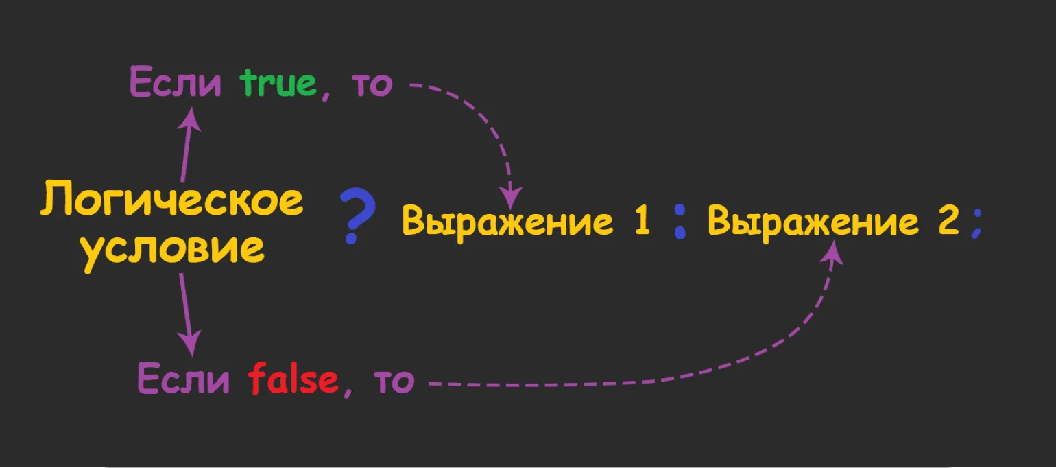 Тернарный оператор, происходящий от латинского слова «ternarius», что означает «тройной», представляет собой языковую конструкцию, состоящую из трёх операндов: логического условия и двух выражений. При выполнении тернарного оператора, если логическое условие истинно (true), будет выполнено первое выражение; если ложно (false) — второе. Стандартная запись тернарного оператора выглядит следующим образом: