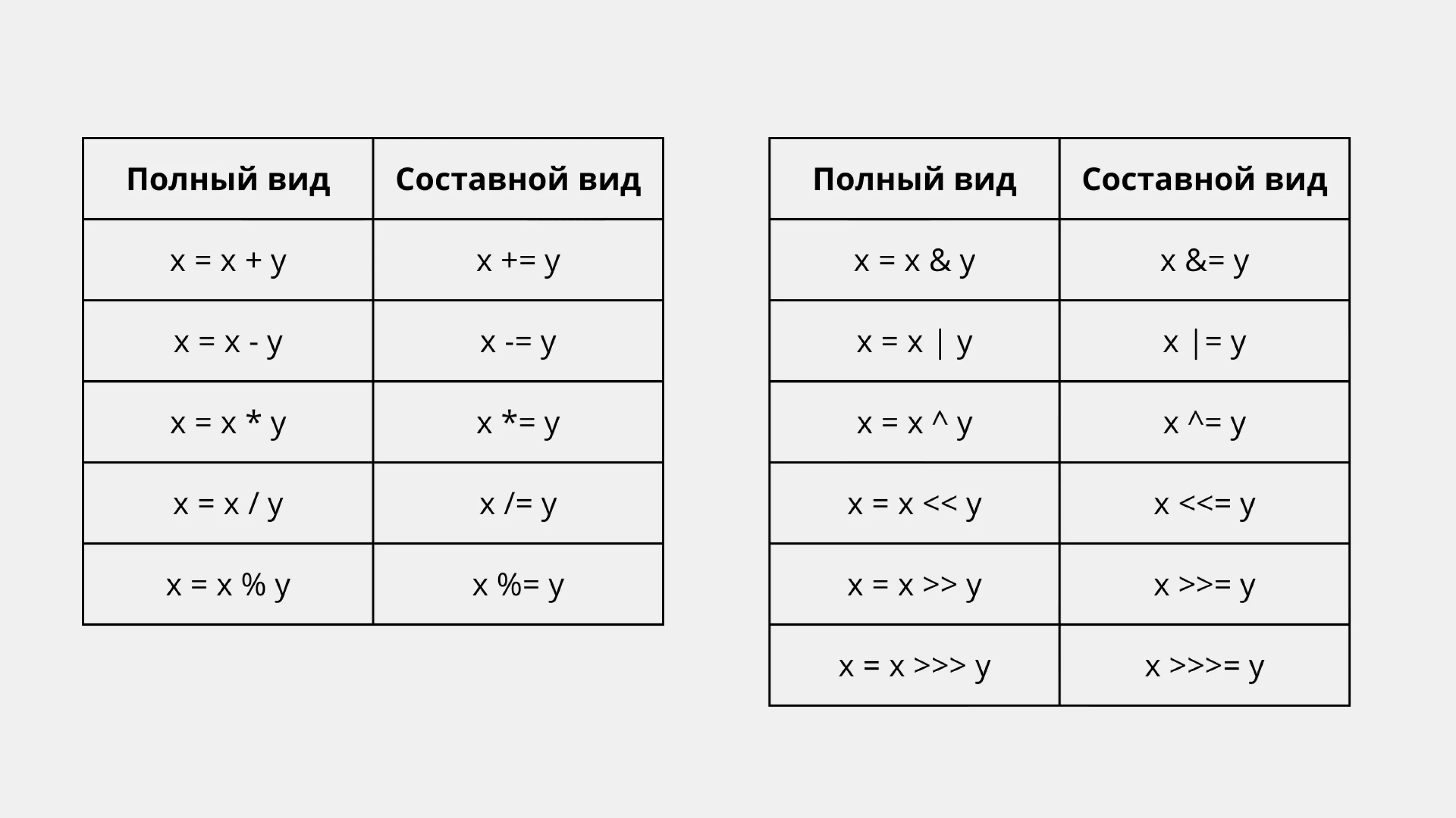 В языке программирования Java существуют сокращенные формы операторов присваивания, известные как составные операторы. Эти операторы позволяют выполнять определенные операции между переменной x и значением y, после чего результат этой операции автоматически присваивается переменной x. Составные операторы представляют собой удобный способ сокращения кода и повышения его читаемости. Примеры составных операторов включают +=, -=, *=, /= и %=, которые позволяют быстро и эффективно выполнять арифметические операции с присваиванием. Использование составных операторов в Java способствует более лаконичному написанию кода и уменьшает вероятность ошибок при ручном присваивании значений.