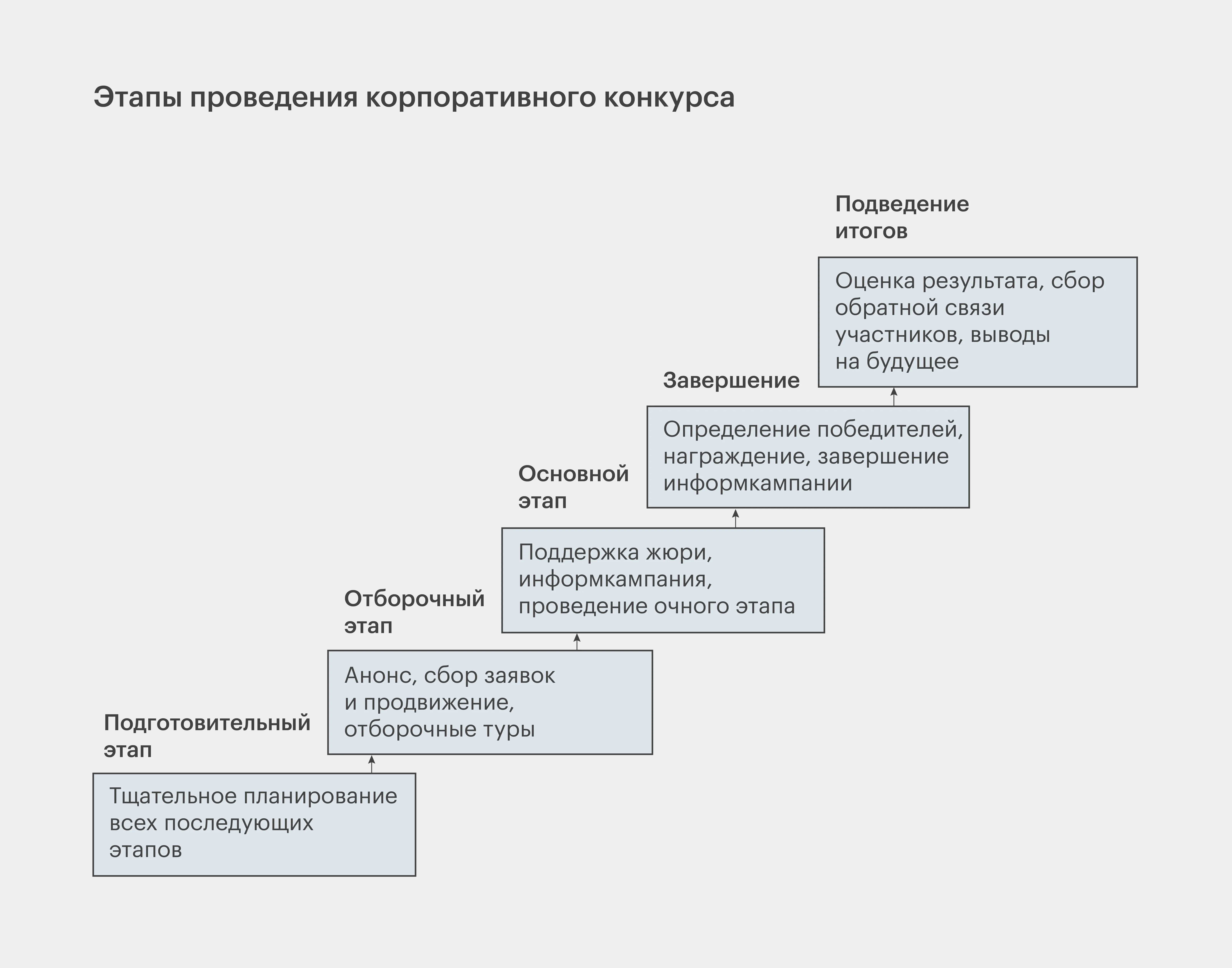 При организации конкурса необходимо учитывать текущую ситуацию в компании и уровень загруженности сотрудников, которые могут участвовать. Например, закрытие квартала — это не самый подходящий момент для этапа подачи заявок, так как в этот период сотрудники сосредоточены на подготовке отчетности, что может привести к низкому количеству участников. Правильное планирование сроков конкурса поможет привлечь большее число сотрудников и повысить интерес к мероприятию.
